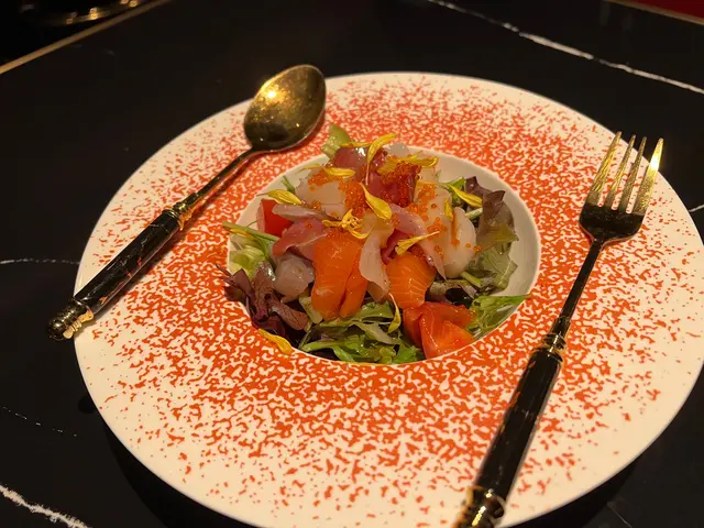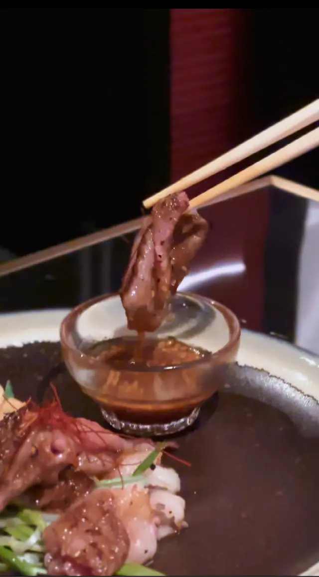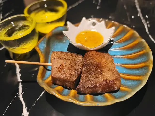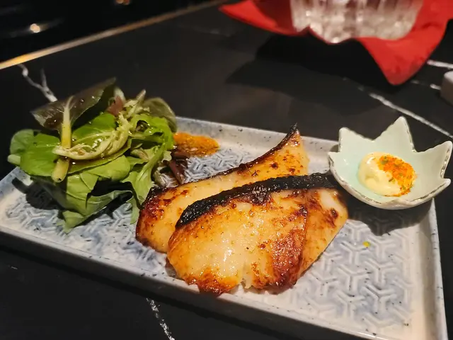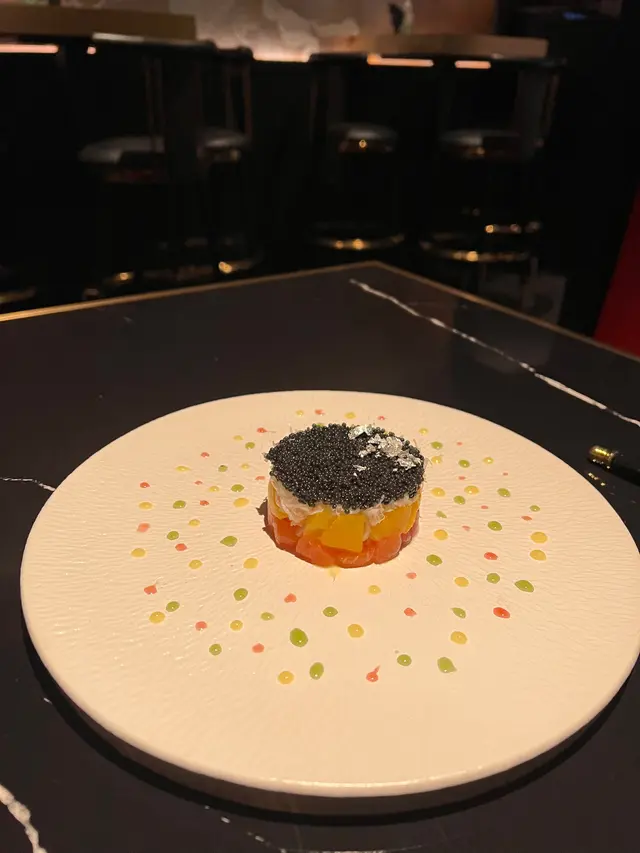 餐廳以🔴紅黑色⚫️為主調,門面設開放式吧枱🍷,主打西日fusion菜,菜式集傳統及創意於一身🌟🦐法國鵝肝赤蝦茶碗蒸💰$128赤蝦爽口彈牙,鵝肝入口即化,鵝油喺口腔漫延,蒸蛋索盡赤蝦、鵝肝精華,尤其滋味😋🐟魚子醬帆立貝刺身香芒塔💰$228面層海量嘅魚子醬上放上銀箔作點綴,夠曬豪華💸底層以松葉蟹肉、帆立貝、金槍魚刺身為主,撈咗芥末同秘製沙律醬汁;配搭微酸芒果🥭,入口清新怡人,令人胃口大開🤤食刺身塔時記得沾上🌈色彩繽紛嘅伴碟 — 果醬,分別喺自家製🥭芒果醬、🍓士多啤梨醬同🥑牛油果醬伴碟,令人更垂涎三尺🤤🔥"焰” 極上6點刺身盛合💰$688(大拖羅·海膽·象拔蚌 • 時令刺身)每款刺身極厚身,一啖放入口大滿足☺️!刺身肉質鮮甜美味不在話下,‼️特別之處:豉油甜味特重,令刺身味道鮮上加鮮;大拖羅油潤綿滑,油脂充滿口腔;海膽鮮甜唔苦;象拔蚌爽口彈牙🐮九條蔥和牛薄燒💰$288九條蔥特別辣口,比普通葱花葱味更濃,更刺激味蕾;薄切和牛軟腍,搭配爽口九條蔥一齊食,沾上芝麻燒汁,層次豐富😋🍣香蔥碎吞拿魚腩卷💰$148吞拿魚腩綿滑無筋位,壽司飯煙韌可口查看更多