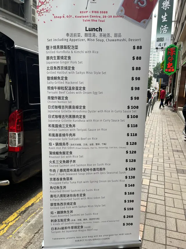 今日出去尖沙咀有其他事情要辦,時間趕急,經過亞士厘道見到一間似是酒吧的餐廳,門口的易拉架卻全部是日式午餐定食,款式選擇多元化,似乎幾啱口味,決定試試。進入「焰」,第一眼就見到一個小酒吧,再往內走就是用餐區。酒吧區以紅黑兩色為主調,天花板綴以同色系的花形圖案,用餐區採用相同色系,但牆壁上的花形圖案牆紙就以淡金色為主色。整體室內設計充滿西洋現代風情格調,卻提供多元化、多款式日式料理,明顯是一間和洋式酒吧 fusion日式料理。午市定食款式選擇非常多,總有一款啱口味。每份定食首先送上前菜 / 麵豉湯 / 茶碗蒸。是日的前菜是海蜇拼海帶,明顯是大批入貨的預製品,味道普通、但正常。麵豉湯也是最基本,沒有加入貝類、魚骨或肉類提味的麵豉湯。茶碗蒸較有驚喜,有幾粒蝦肉、入口滑溜,只嫌味道調校得偏甜。照燒牛柳粒配溫泉蛋定食($98)賣相麻麻,但牛柳粒份量相當多,肯定算抵食 ⋯⋯ 入口就非常失望。溫泉蛋過熟,雞蛋黃做不了流心效果;牛柳粒更差,雖然入口非常鬆軟,但完全欠缺牛肉味,甚至沒有肉味可言。飯粒軟糯,應該是珍珠米種,但照燒汁味道調校得非常非常差,勁鹹勁甜,完全失去照燒汁的精粹。日式咖喱吉列廣島蠔定食($108)外觀吸引,飯團、吉列蠔及咖喱汁舖排整齊;但味道唔合格。日本咖喱應該少辣、帶有蔬菜的清;但這個咖喱汁唔辣之餘,竟還要酸酸地!至於吉列蠔,表面的麵包糠脆粉漿比較厚身,幸好尚算香脆;雖然蠔肉細細隻,但整體算做不錯。牛肉昆布湯烏冬配時令壽司兩件($128)是味道較為正常的出品。不過,牛肉質素同樣只是一般;至於昆布湯底,味道同樣未見特別,同其他港式料理差不多,一般而已。以尖沙嘴區來說,每份午餐定食即使原價也相當合理,加上有八五折,而且還有前菜 / 麵豉湯 / 茶碗蒸 / 甜品,實在抵食,本來好難挑剔;但味道又實在相當差 ⋯⋯ 睇返其他食評及照片,晚市主餐牌的出品偏偏又似乎幾吸引。定價亦唔算貴,究竟lunch同 Dinner 是否真係相差咁遠?查看更多