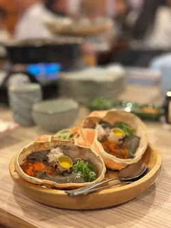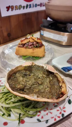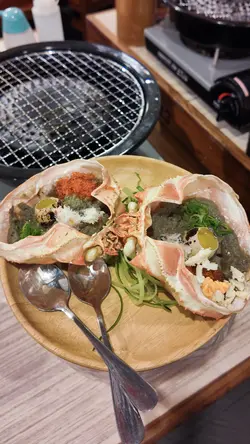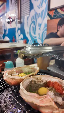 週末跟朋友出來,當然係食餐好的,朋友選了這家炎丸水產,主要食磯燒海鮮,是香港磯燒海鮮的始祖磯,餐廳附設大魚缸, 海鮮由日本空運直送,包括鮑魚、龍蝦、鱈場蟹等,全部都是鮮活海鮮,由專人即場席前烹調,舒服享受美食。餐廳裝修充滿日式風味,以傳統日式魚市場為裝修主題,身處其中超有feel 💯,最有趣係可以用「發聲雞」落單🤣🌟左口魚刺身先來個刺身,左口魚味道清爽,適合夏天食用,味道鮮甜,口感爽脆,越吃越帶甜味😋🌟芝士甲羅燒這裏的招牌菜之一,味噌甲羅燒的變奏版,蟹蓋內加入蟹膏、蟹肉、三文魚子、鵪鶉蛋,再加入芝士,店員一邊燒一邊搞拌,燒烤後超香,滿滿的蟹肉鮮味,拌隨青瓜絲同吃,清爽又好味😋🌟鮑魚殼燒用上新鮮活鮑魚,鮑魚大隻又厚身,即場以磯燒方法烹調,再搽上醬油提味,超鮮甜又彈牙👍🏻🌟燒活鰻再來就是燒活鰻,份量充足,鰻魚厚身夠肥美,經過燒烤後更做到皮香脆,肉爽彈,啖啖肉🌟烏賊磯燒然後最後來個磯燒烏賊,整隻魷魚原條燒,店員燒得剛剛好,沒有過熟,口感彈入味🌟鮭魚冷麵天氣咁熱,當然要配刺身吃,這個超適合打卡,將三文魚切成長條裝,配日式醬汁、雞蛋及青蔥等配料,清爽又鮮味🌟肉盛壽司盒又係必點之一,份量超充足,滿滿的牛肉刺身,似瀑布般傾瀉,超IG-able,牛肉鮮味滿盈,每一啖都好滿足😌🌟飲品:黑白生啤/檸檬可樂highball 居酒屋必然要喝點小酒,鹗個檸檬可能highball 好飲👍🏻…查看更多