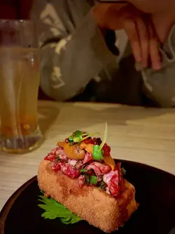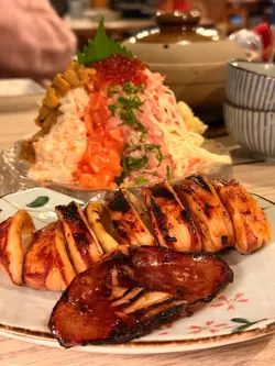 呢間充滿日式裝修,主打磯燒海鮮嘅居酒屋,好有日本🇯🇵感覺,店員席前即燒海鮮、燒肉感覺,好睇又好食🤤🪄炙燒左口魚煲仔飯店舖主打,煲仔飯好有中式味道,用火槍炙燒左口魚逼出魚油,再加入海膽、三文魚籽、蔥花等入口即溶 超級香口,配上飯焦口感豐富🪄自慢の焱丸號刺身份量堆到滿瀉超多,海膽、帆立貝、吞拿魚蓉、三文魚及蟹柳,仲有青瓜卷🪄 蟹味噌甲羅燒、海膽帆立貝燒、白蜆磯燒海鮮即燒即食,全部都好新鮮,白蜆特別鮮甜,甲羅燒蟹味都好濃郁🪄 鳥賊磯燒原隻烏賊直接放上去燒,搽少少醬汁已經好鮮味,整體口感彈牙🪄和牛燒物盛盒 有兩款和牛部位,直接由店員幫手燒肉好爽🤣入口油香牛氣,牛舌質感爽彈🪄白桃玉露、蜜瓜🍈特飲蜜瓜特飲非常搶眼,好大件密瓜直接放入杯,又有得飲又有得食,夠晒解渴🚩 焱丸水產 (尖沙咀)尖沙咀棉登徑23號華楓大廈地下5&6號舖@enmaru.siusan #addifoodie #addifoodie尖沙咀#香港美食 #焱丸水產 #尖沙咀磯燒 …查看更多