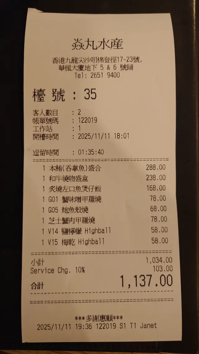 焱丸水產 (尖沙咀) 網上訂座享低至85折優惠兼賺Rice Dollars 網址: https://s.openrice.com/QrbS0xb4500 地址: 香港尖沙咀棉登徑23號華楓大廈地下5&6號舖 電話: +852 26519400