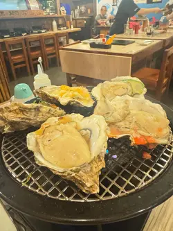 週末跟朋友出來,當然係食餐好的,朋友選了這家炎丸水產,主要食磯燒海鮮,是香港磯燒海鮮的始祖磯,餐廳附設大魚缸, 海鮮由日本空運直送,包括鮑魚、龍蝦、鱈場蟹等,全部都是鮮活海鮮,由專人即場席前烹調,舒服享受美食。餐廳裝修充滿日式風味,以傳統日式魚市場為裝修主題,身處其中超有feel 💯,最有趣係可以用「發聲雞」落單🤣🌟左口魚刺身先來個刺身,左口魚味道清爽,適合夏天食用,味道鮮甜,口感爽脆,越吃越帶甜味😋🌟芝士甲羅燒這裏的招牌菜之一,味噌甲羅燒的變奏版,蟹蓋內加入蟹膏、蟹肉、三文魚子、鵪鶉蛋,再加入芝士,店員一邊燒一邊搞拌,燒烤後超香,滿滿的蟹肉鮮味,拌隨青瓜絲同吃,清爽又好味😋🌟鮑魚殼燒用上新鮮活鮑魚,鮑魚大隻又厚身,即場以磯燒方法烹調,再搽上醬油提味,超鮮甜又彈牙👍🏻🌟燒活鰻再來就是燒活鰻,份量充足,鰻魚厚身夠肥美,經過燒烤後更做到皮香脆,肉爽彈,啖啖肉🌟烏賊磯燒然後最後來個磯燒烏賊,整隻魷魚原條燒,店員燒得剛剛好,沒有過熟,口感彈入味🌟鮭魚冷麵天氣咁熱,當然要配刺身吃,這個超適合打卡,將三文魚切成長條裝,配日式醬汁、雞蛋及青蔥等配料,清爽又鮮味🌟肉盛壽司盒又係必點之一,份量超充足,滿滿的牛肉刺身,似瀑布般傾瀉,超IG-able,牛肉鮮味滿盈,每一啖都好滿足😌🌟飲品:黑白生啤/檸檬可樂highball 居酒屋必然要喝點小酒,鹗個檸檬可能highball 好飲👍🏻…查看更多