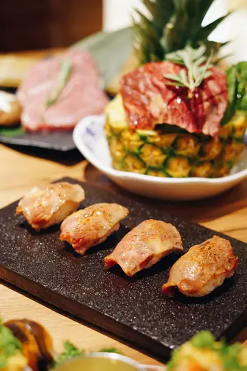 成日屯門經燒肉 焰,門口裝修用上了木屏風,強烈的日式感覺,呢間日式燒肉餐廳不論味道環境服務都係一流,職員仲會幫你燒烤肉,咁就掌握到最好味嘅火候👍🏻一口牛三食 $128一大碟一口牛配上,香蔥、蒜香、辛辣,幾種口味,咁就大家都啱食!一口牛係燒熟之後先至加上配料,香蔥超級好食,啲蔥有一定厚度,令成個口感提升。菠蘿胸腹肉 $288視覺效果一流,有一整個菠蘿,職員將成個菠蘿肉起咗出嚟,然後將靚靚牛胸腹肉放喺菠蘿上面☝🏻黑毛和牛壽喜燒 $268黑毛和牛雪花狀態兩片大過手掌🤤超級吸引。質感都非常好,職員會幫我哋燒,燒嘅過程非常有技巧掌握最完美熟度。配上蛋黃同飯肉味鮮美,口感極佳!龍蝦尾 $258視覺效果一流,兩條龍蝦尾大大隻,上面鋪滿新鮮蒜蓉,未燒已經好想食!職員會幫你燒佢哋燒得好有技巧,側邊蒜蓉牛油都會放落去。食材高質素簡單少少蒜蓉調味已經好正,龍蝦肉咬落去爽口。特選燒牛肉飯 $168成個飯鋪得好靚,每片牛肉都經過火炙,外層微焦,入面仲係粉紅色非常嫩口,蛋黃鮮黃色質感唔錯, 牛肉醮上蛋黃漿,再配上白飯好好食。焼肉 焰 (屯門)屯門屯順街1號屯門市廣場1期2樓2253A號舖FOODMAZE內