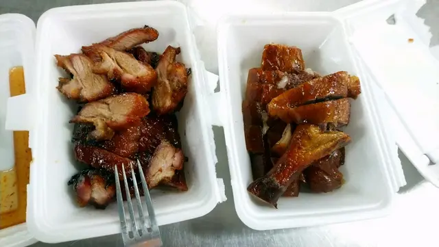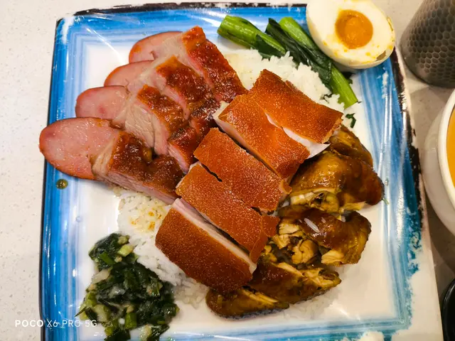 今日嚟番啅呢間位於堅尼地城既煌成燒鵝,上次已是两年多前光顧,今次嚟想食佢個乳豬五寶飯。午餐時份到店,店內食客頗多,好不容易找到一個搭枱座位,坐下就即點呢個乳豬五寶飯,五寶即叉燒,油雞,乳豬,红腸同埋半隻咸蛋。叉燒熱辣辣,肉嫩又淋,最好食,乳豬肥瘦相間,红腸口感豐富,咸蛋香口好餸飯,係油雞比咗個翼位比我,有d唔開心。整體滿意。[米饭]口味:🥚🥚🥚[薄荷]环境:🥚🥚🥚[服务铃]服务:🥚🥚🥚[糖果]性价比:🥚🥚🥚…查看更多