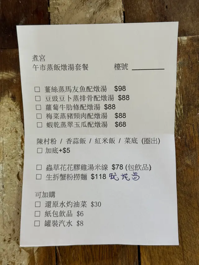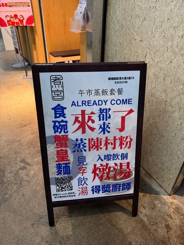 煮宮 (觀塘) 網址: https://s.openrice.com/QrbS0jfO800 地址: 香港觀塘開源道60號駱駝漆大廈第三座7樓S室 電話: +852 63525748