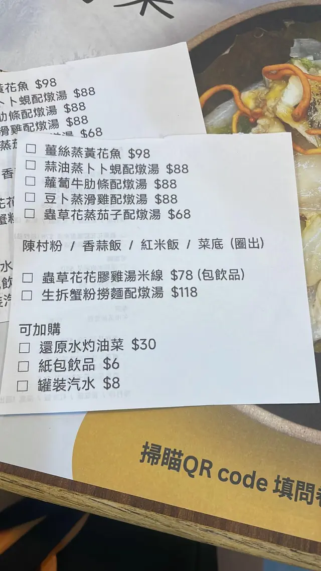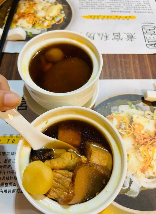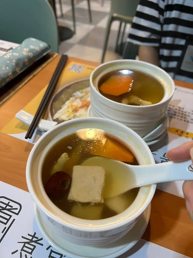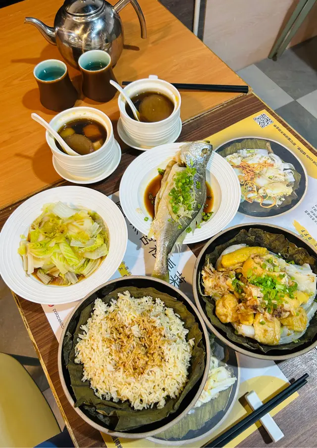 每次去親觀塘搵朋友食lunch,喺呢區返工嘅朋友一定有好多推介,靚女朋友介紹咗一間主打健康蒸煮料理嘅午市蒸飯套餐,誠意十足,味道與營養兼備。喺地鐵站站行過去大概三四分鐘,地點非常方便易搵。門口細小,不過非常光猛亦都有好大個牌寫住私房菜餐廳名。我哋12點去到時間尚早,叫咗每人一set午市蒸飯燉湯套餐,女仔都鍾意飲湯,可以午餐都有靚燉湯飲,感覺都特別溫暖!蒜蓉蒸卜卜蜆陳村粉蜆肉鮮甜,滑溜溜的陳村粉吸收了蜆的鮮味與蒜香,口感層次豐富,味道突出。豆卜蒸滑雞紅米飯蒸雞嫩滑入味,豆卜吸收哂雞汁非常之香,紅米飯粒粒分明有咬口,健康之餘亦有飽肚感。蘿蔔牛肋條菜底牛肋條炆得好腍,蘿蔔甜美多汁,底下鋪了大量娃娃心,健康之選。雪梨乾瑤柱燉湯湯水清甜,材料十足,雪梨乾與瑤柱香味融合,燉得好入味亦好夠火喉,入口回甘,非常養生滋潤。午市蒸飯套餐食材新鮮,味道出色,蒸煮方式保留了食物原味又健康,價錢唔貴又抵食,係一間適合午市好好享受一餐好飯的好地方。…查看更多