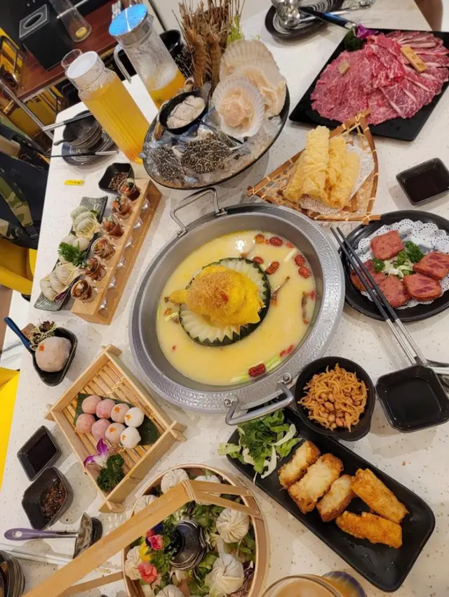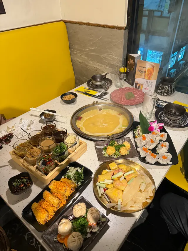 今日收工無意中發現呢間樓上火鍋店地址位於金馬倫道一幢商廈3樓地點非常方便上到去嘅時候比一般火鍋店企理環境好乾淨 空氣唔會好侷促 而且裝修得好靚睇得出老闆好注重細節位上到舖頭一出𨋢 見到流水座冇多餘嘅雜物 第一個印象已經好好講到食物見到佢哋嘅火鍋有好多湯底真係好難揀 傳統嘅創新嘅都有相信每一個人心目中都會有佢想食嘅湯底可以滿足晒所有人 今次揀咗佢哋椰子花甲蟹湯底 初初飲比較清淡都打邊爐,打到尾聲嘅時候 再飲嘅時候,確實好鮮甜 飲完都唔會好頸渴 唔係味精湯嗰隻加上佢嘅湯底裏面已經有晒花甲螃蟹粟米蘿蔔同秀珍菇 所以真係性價比好高 可以嗌少幾樣餸而佢哋嘅食材都好新鮮最令我印象深刻嘅係佢哋有四寶丸 酒心雞肉丸 同流沙墨魚丸 芝士蝦丸 梅菜豬肉丸 四隻都好好食 而且呢個組合 真係好少見 好有噱頭 老闆喺研究新菜式方面 都非常用心 椒鹽粟米同孜然單骨雞翼都好好食 大家一定要嗌嘅 我覺得係 無骨醉豬手 醉雞就食得多 豬手嘅味道同口感一流 重點係冇骨同埋配菜涼拌雲耳都非常好開胃 所以下次一定要點 服務質素都好好 定時會有人行過嚟跟進我哋嘅食物 同關心我哋食後感冇諗過喺呢度都會受到五星級酒店嘅服務而且佢哋嘅員工反應都好快亦都好有耐性解答客人嘅問題員工都培訓得好好 保持一致性總結 呢餐四個人總共食咗$1500左右平均每人食咗$350 呢個價錢絕對值得!享受到優質服務,食物同環境嘅品質~我會再介紹朋友過嚟!
