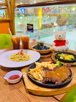 MegaBox 11樓‼️隱藏著一間主題餐廳古董傢具為餐廳注入濃厚懷舊味道每一個角落收藏着著充滿歷史性童年回憶的泰迪熊公仔🧸有主題派對房🤹🏻♂️兒童遊戲專區🧩多款熊仔精品仲有8折優惠🐻一邊鋸扒一邊睇溜冰⛸️情侶👩🏼🤝👨🏻親子👭🏻又點可以錯過呀😎♨️鐵板套餐♨️18:00後入座85折19:00後入座9折21:00後入座7折*六日及假期除外🎫*顧客憑當日票尾一張即可於熊小館餐廳堂食享全單85折優惠。✨鐵板肉眼扒口感實在,油花豐富,肉質軟嫩多汁,牛味濃郁👍🏻✨鐵板牛柳拼吉列魚柳牛柳且油脂含量低,非常軟腍,同其他牛肉相比,幾乎無筋👍🏻 即炸吉列魚柳皮薄魚滑,份量滿足😌✨啤酒脆漿炸洋蔥圈必點經典小食,超級酥脆的外層,鮮甜軟嫩的內層,非常邪惡,份量超多👍🏻✨冰花燉蛋白冰花燉蛋白口感嫩滑,配自家焦糖漿甜度適中😌📍熊小館九龍灣宏照道38號企業廣場5期MegaBox 11樓…查看更多