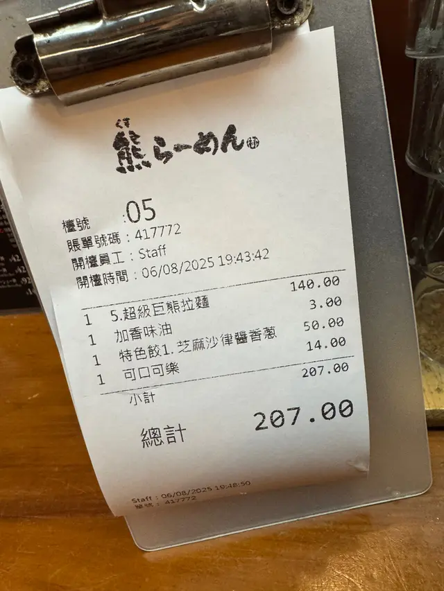 熊拉麵絕對是我喜愛的拉麵!湯頭經過長時間熬煮,濃郁而不膩,帶有豬骨香甜!入口後,但又不會過於油膩,湯底好喝到不得了!拉麵的麵條彈牙有勁,完美吸住湯汁,配料方面,厚叉燒,肥肉比例均衡,煮得好淋,入口即化,搭配湯底非常美味。半熟蛋蛋黃綿滑,為整碗拉麵增加了一抹滑潤的口感層次。總結來說,熊拉麵用心熬製的豬骨湯底,濃郁不膩、層次豐富,搭配彈牙麵條與鮮美配料,是我最喜愛的一碗拉麵,誠意推介給大家😊喜愛拉麵的你,試試吧🙂…查看更多