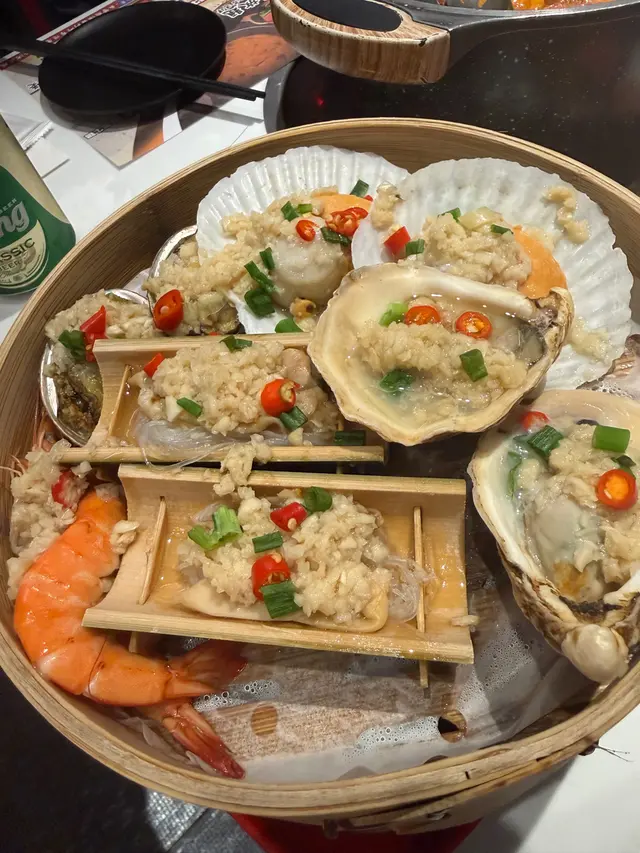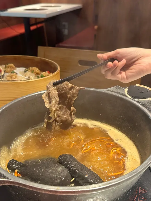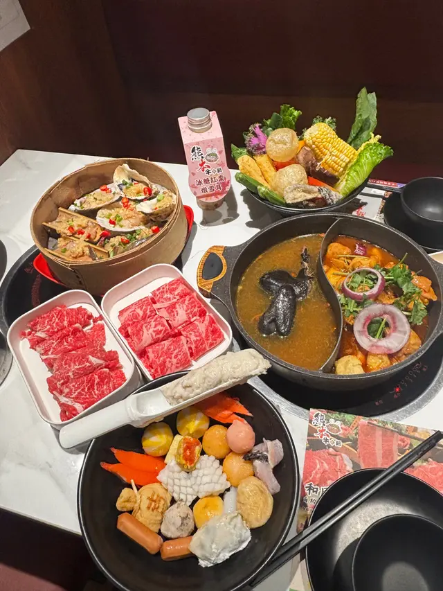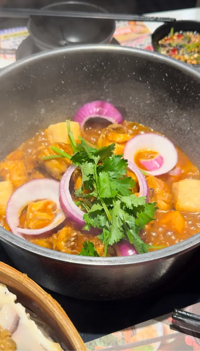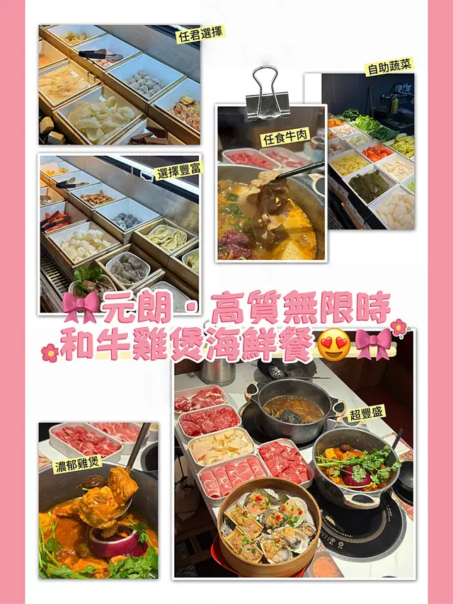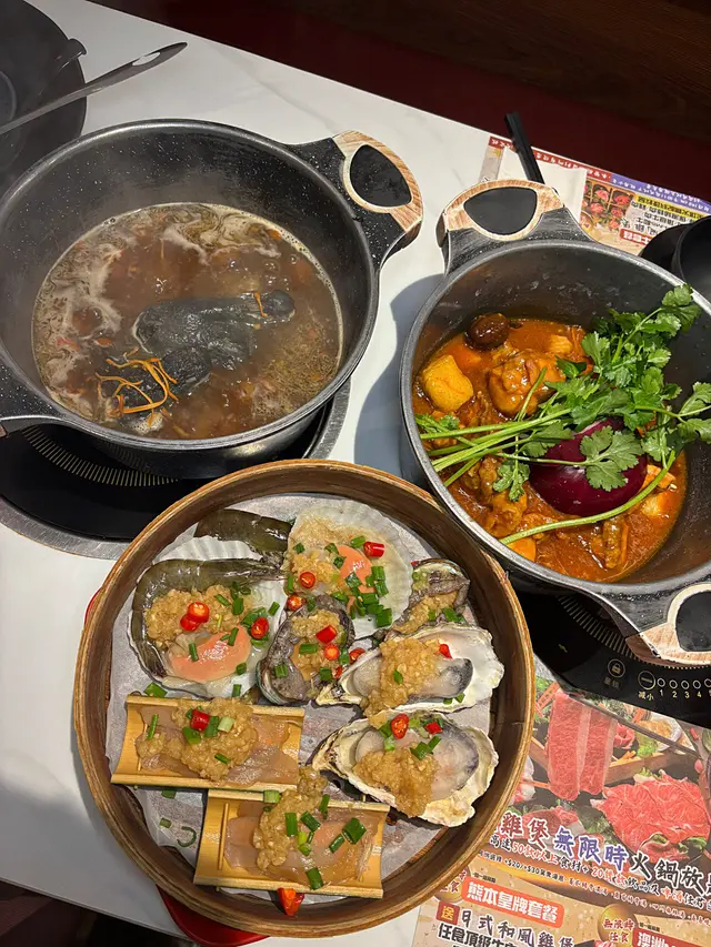 最近天氣涼左要食嘅一定有雞煲同羊腩煲!呢間就係元朗主打無限時雞煲打邊爐體驗 傍晚七點左右到都好多客人好熱鬧🍲澳洲和牛套餐💰308套餐包雞煲同埋任食牛肉 出面都有打邊爐料可以拎入座即有和風雞煲同蟲草花烏雞湯 烏雞湯有半隻雞係入面 飲落暖笠笠 雞煲食得多和風真係未食過 入面除左雞之外有蕃薯紫薯同豆卜 個味會淡D 冇其他港式雞煲咁濃值得一提打卡like會送免費蒸海鮮!大四喜蒜蓉蒸鮑魚 蟶子 生蠔同帶子全部都有 入面仲有D蒜蓉粉絲牛肉品質都高 不過冇咩點叫到 要自己加湯落雞煲到再打邊爐 出去調味打邊爐就啱曬出面可以拎嘅火鍋料都多 自家製就有手打丸 餃子 各種蛋餃 特別D仲有超大塊嘅牛舌 鵝腸同牛柏葉等等可以拎!當然蔬菜都有好多選擇 菌子 娃娃菜應有盡有野飲選擇都多 有自家製嘅紅棗燉雪耳糖水 仲有冇咁熱氣嘅夏枯草 仲有D 燉蛋 米糠布甸可以食!整體當日客流量都高 所以staff比較忙 不過換野食都算快 唔使等好耐~…查看更多
