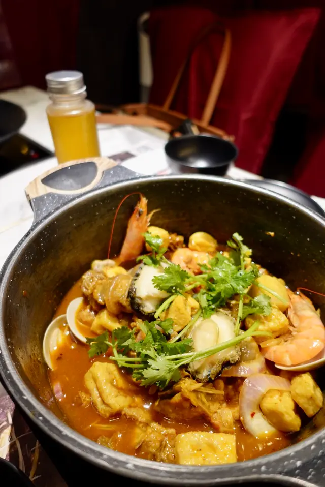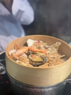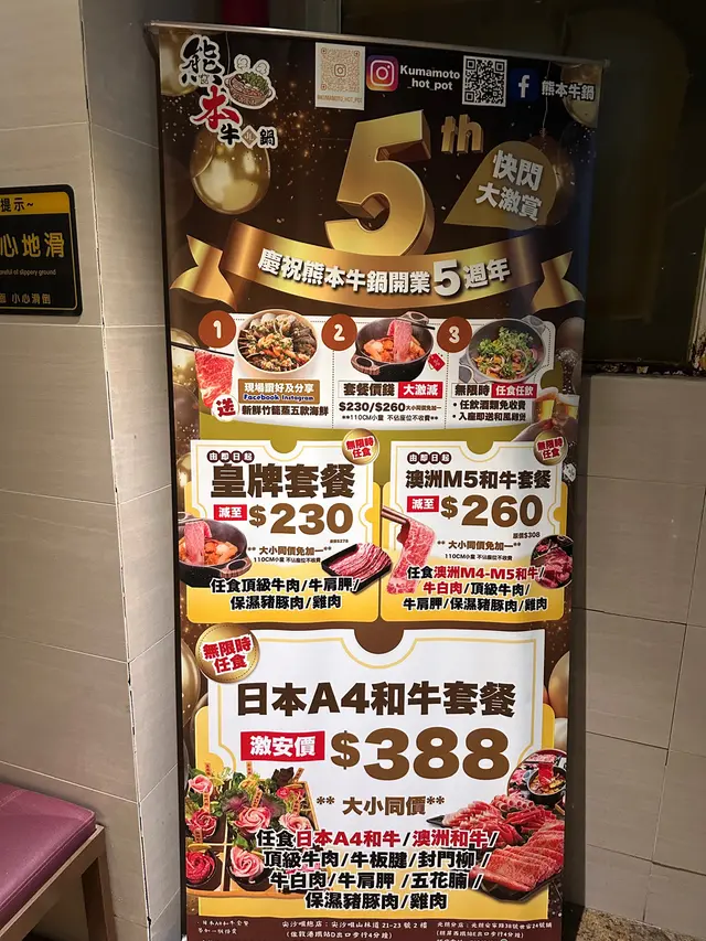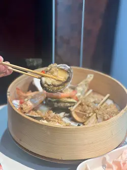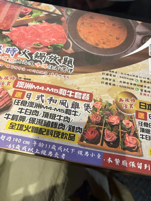 喺OpenRice已經收藏咗呢間餐廳好耐,一直都未有機會去食,今次終於去食啦,一早打咗電話去book位, book咗7:00 ,不過我哋記錯時間,以為係六點就去到,點知原來餐廳6:30先開門,但係餐廳好好,我哋撳鐘問可唔可以入去坐先,佢都俾我哋入去坐,仲已經可以開始食,店員非常友善。店員會同我哋解釋食嘅流程,一開始係食雞煲,可以任食雞煲,食完之後就上蒸海鮮,之後就可以轉火鍋。餐廳比我想像中細,通常放題餐廳嘅座位都幾多,餐廳都比較大,而且呢個仲係無限時任食,但係竟然只有10張枱左右,類似係一個居酒屋改建嘅,因為佢攞嘢食嘅位置,睇落都應該係一個居酒屋嘅吧枱位置,餐廳細細的,一眼睇晒,不過冇乜人食,我哋由六點食到10點,都冇坐滿。任飲嘅罐裝飲品款式都算多,仲有啤酒出面自助區有好多款式嘅丸、菜、火鍋配料可以隨便攞,亦都有醬汁,仲有已經可以食得嘅炸薯條同埋炸腐皮卷另外仲有雪糕同甜品,甜品有木糠布丁、豆腐花、藍莓奶凍等等首先食雞煲我哋叫咗唔辣,個醬汁甜甜地,幾好食,啲雞都好嫩滑,唔會太鞋太乾,亦都唔會有好勁嘅雪藏味之後食蒸海鮮呢個蒸海鮮只需要喺現場like and share佢哋社交平台就可以有得免費食海鮮份量係計人頭,我哋三個人就每款海鮮有三份,有扇貝、蟶子、蝦、蠔,全部都幾好食,唔會太熟咬唔開,有蒜蓉蒸幾好食火鍋方面,我哋叫皇牌套餐,每人$230,仲要免加一,好抵呢可以任食牛肉豬肉,係牛肩胛同保濕豚肉,兩款都好好食。上菜非常快,基本上一叫完就即刻可以攞出嚟,店員亦都好主動問我哋需唔需要加肉,可能因為餐廳細,店員都可以好快為我哋服務。肉攞出嚟都唔會仲係冰/好硬lastorder 9:30pm,配料就冇,但係甜品、飲品仲可以繼續攞,連肉都仲可以繼續叫!總結,無限時,我哋由6點食到10點,230免加一,仲食齊火鍋、雞煲、蒸海鮮,非常抵,加上座位坐得舒服,店員又友善…查看更多