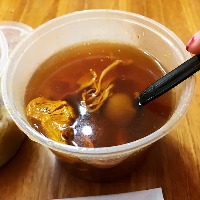 無味精,看得見的湯料 pattijane等級32020-05-211K 瀏覽 關注 在附近忙碌完畢,有點口乾,見到有湯水舖頭,入內歇歇。川萼百芷天麻魚頭湯經常頭痛時都靠這湯水進補解決。習慣了其苦味,連出外也希望多喝點。湯是熱著上桌的。湯料有齊。不過味道有點淡,就像水是水,湯料味還湯料味,沒有融合在一起。沒有家裡煲般入味,感覺不是喝湯水,是在吃湯料然後喝水。有點可惜。看得出店舖主打工業區外賣,如要堂食便要站著吃了。而且套餐也挺化算,小菜連飯加湯都只是一個午餐價多少少。人工作生活忙碌,若然午餐都能滋補一下,因而排解下壓力,多好。下次有機會,希望試個湯水+飯餸餐。…查看更多以上食評乃用戶個人意見 , 並不代表OpenRice之觀點。2分享無味精,看得見的湯料 燉 https://s.openrice.com/QrbT0oECu00檢舉 張貼 評分3味道3環境4服務3衛生4抵食用餐日期2020-05-21用餐途徑堂食人均消費$69 (下午茶)