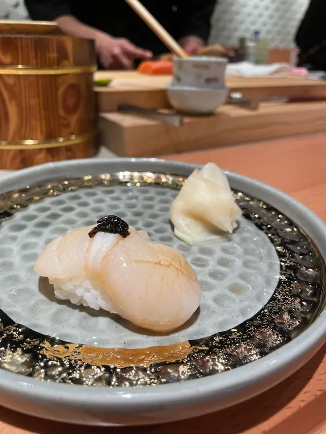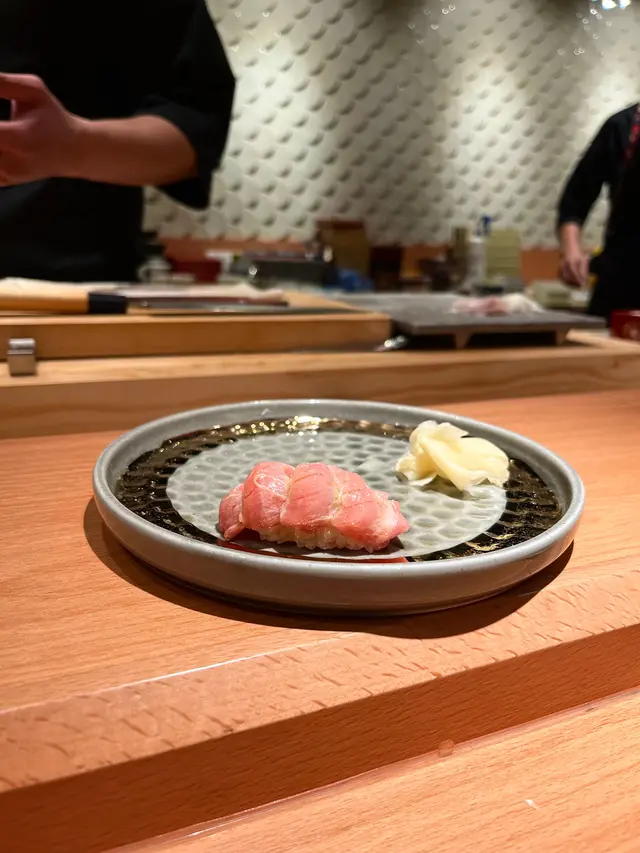 「燐寿司」平日午餐時段竟然只需$328就可以品嚐到11貫壽司+前菜+卷物+湯品同甜品🍣🍮認真抵食!餐廳環境寧靜舒適😌師傅手法純熟,每道菜都會細心講解,好適合初試Omakase嘅朋友。前菜:田樂茄子配蟹肉 茄子煮得軟淋入味,面頭鋪滿鮮甜蟹肉,醬汁帶微微甜味,清新開胃。壽司11貫逐件講: 1️⃣ 北海道帶子|厚肉鮮甜,口感細嫩 2️⃣ 甘海佬甜蝦|蝦味濃郁,入口黏滑 3️⃣ 日本烏賊|烏賊爽口,加上微微焦香同柚子啫喱嘅清新,層次豐富 4️⃣ 骨膠真鯛|師傅話呢款真鯛嘅骨膠原比普通鯛魚多3.5倍,食落果然特別軟滑 5️⃣ 平目魚|魚肉淡雅,柚子皮增添香氣 6️⃣ 佐口魚群邊|油香豐富,入口即化 7️⃣ 秋刀魚|秋刀魚當造,魚味濃郁,配上薑蔥辟腥之餘更帶出鮮味 8️⃣ 春魚|皮下脂肪豐富,輕輕一燒逼出魚油香,麵豉醬鹹香惹味 9️⃣ 赤身|經典口味,魚味濃厚 🔟 中拖羅|油香充沛,洋蔥醬酸甜清爽,完美中和油膩感⏸️ 海膽手卷|海膽份量足,鮮甜無腥味 卷物:拖羅手卷拖羅剁碎後油香更突出,入口融化湯品+甜品: ▪️ 味增湯|傳統口味,暖胃舒服 ▪️ 追加紅豆雪糕|紅豆香甜,雪糕滑順,為成餐畫上完美句號總體來講😌$328呢個價錢絕對物超所值!食材新鮮、款式多樣,師傅處理手法亦見心思。如果想試Omakase但又怕貴,呢間絕對係入門首選!…查看更多