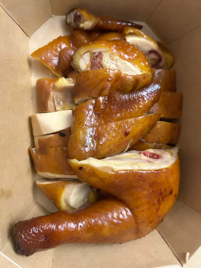 半隻雞70幾蚊性價比高。 店舖換咗個外賣盒大好多。 今日特別節日師傅俾咗隻大雞髀。佢啲油雞不嬲都好食。啲雞無臭味甜甜的,啲肉都新鮮小骨。 叉燒麻麻燒鵝好食$100半隻都唔錯查看更多