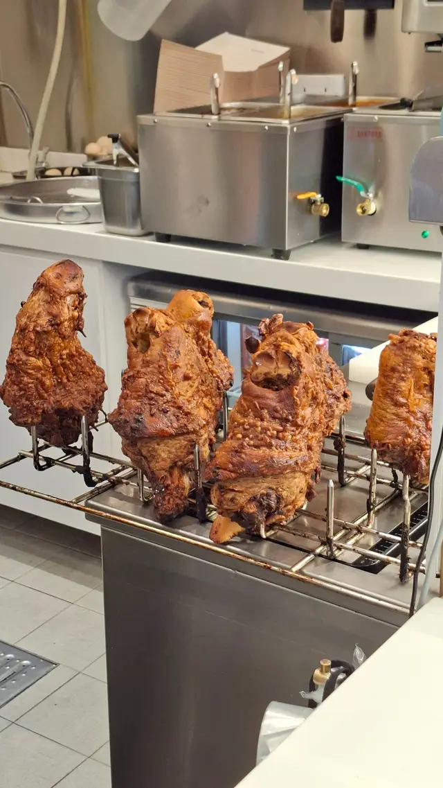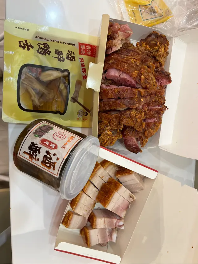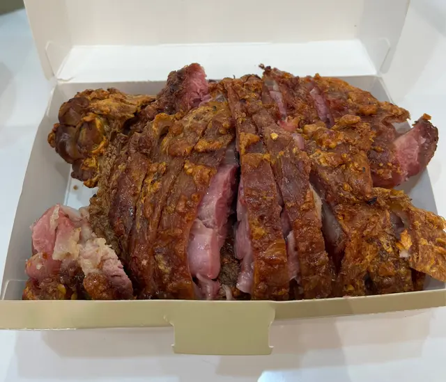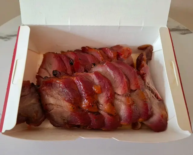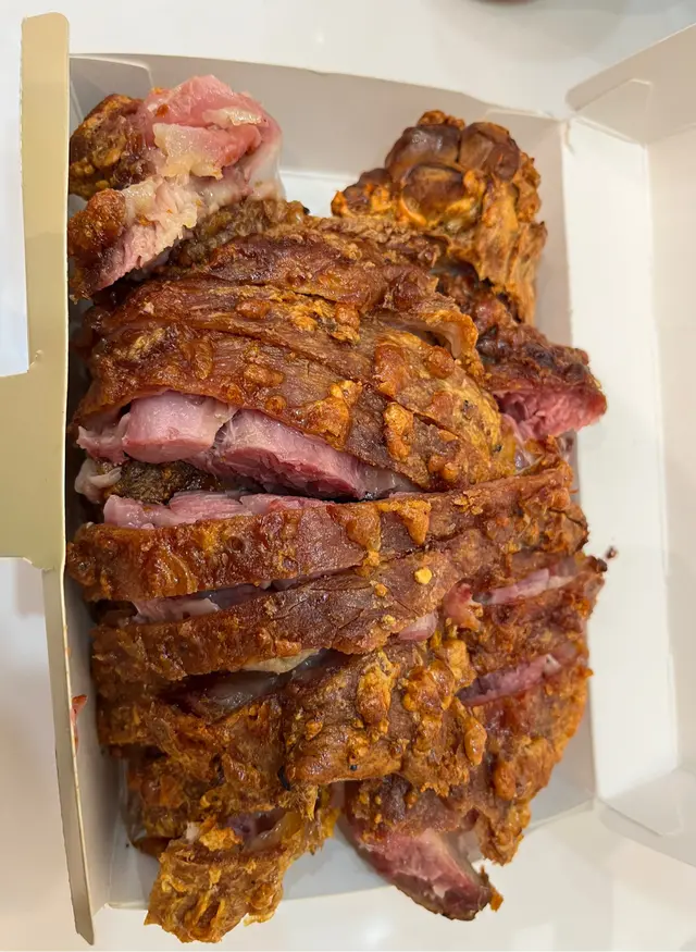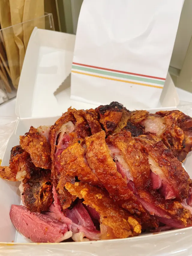間中都會到屯門V City逛街,這次經過地下一田超市,發覺有個區域裝修後,開了多間餐廳及外賣店~見到這間賣燒味為主的燒洒一族,門面裝潢光鮮又整齊,記得爸爸最喜歡吃鹹豬手& 燒腩仔等,決定買回家加料!!德式燒鹹豬手(XL) ($118)德式燒鹹豬手是店內工場現燒出來,可見相當新鮮~ 鹹豬手外皮香脆,肉質不會過鹹,調味得宜,份量又多,相當抵食!! 個人覺得最犀利是由一位後生女負責切燒味,刀功亦相當利落,雖然我都經常入廚,但對於切燒味都沒有信心~自家制燒腩仔 (兩條) ($118)兩條燒腩仔份量已經相當多,放滿一整盒,而且每件都切得好工整,看見已經很想吃~ 燒腩仔外皮相當鬆脆,而且肉質肥瘦相間,可見用料相當不俗~ 最愛吃燒腩仔的爸爸,都相當滿意