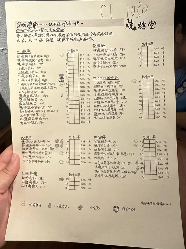 放工跟好姊妹聚會,今次我哋揀咗去食串燒「燒烤堂」食品有成百款選擇食物質素固然重要,呢度嘅服務仲好好,職員做事爽手有禮貌👍🏻除咗普通嘅串燒外,仲有好多特色創意組合我哋點咗點咗:🐓 雞🌟 鹽燒鮮三黃雞腿肉:肉質鮮嫩,鹽香四溢🌟 鹽燒原塊雞皮: 好大嘅一塊,脆卜卜,鹽味恰到好處🐮 牛🌟 盬燒和牛牛小排:肉質滑嫩,油脂豐富🌟 厚切鹽燒牛舌拖羅:厚實彈牙,充滿油香🌟 和牛棒(配松露一口飯):松露香氣撲鼻,牛肉燒得香口,加上香蔥跟蛋黃金白飯撈在一起,簡直完美配搭🦑 海鮮🌟 雞皮墨魚滑:雞皮包裏着墨魚滑,咬落彈牙,味道很好🌟 蒜香牛油酒煮蜆:酒香四溢,蒜味濃郁,蜆肉鮮美🌟 蒜蓉日本廣島蠔:生蠔飽滿,蒜蓉惹味,令人回味無窮🍅🍢 創意料理🌟 焦糖青蘋果鵝肝多士:甜咸交融,口感層次分明,鵝肝超香🌟 桂花蜂蜜小蕃茄:桂花味濃,加上蜂蜜嘅甜,跟蕃茄嘅酸味混合,口感清新🍆🥬 🌟 孜然燒蒜心:香氣濃烈,口感脆爽🌟 孜然蒜蓉茄子:茄子香滑,孜然蒜蓉夠晒惹味🍮 甜品🌟 黑糖菠蘿:凍食的,黑糖形成一層脆糖包裹著香甜嘅菠蘿,菠蘿無渣,酸甜可口,我哋食完再encore🌟 糖不甩燒芝麻湯圓:外皮Q彈,芝麻餡香濃,加上外層嘅花生碎,暖暖哋食,感覺好幸福🍹 🌟 香水檸檬茶:手打香水檸檬,清新提神,酸甜適中🌟 即打芒果乳酸:濃郁芒果香,加上乳酸,甜度剛剛好,口感好滑🌟 椰青:大大個,清甜可口,解渴又健康整體無論餐點跟服務都好好👍🏻…查看更多