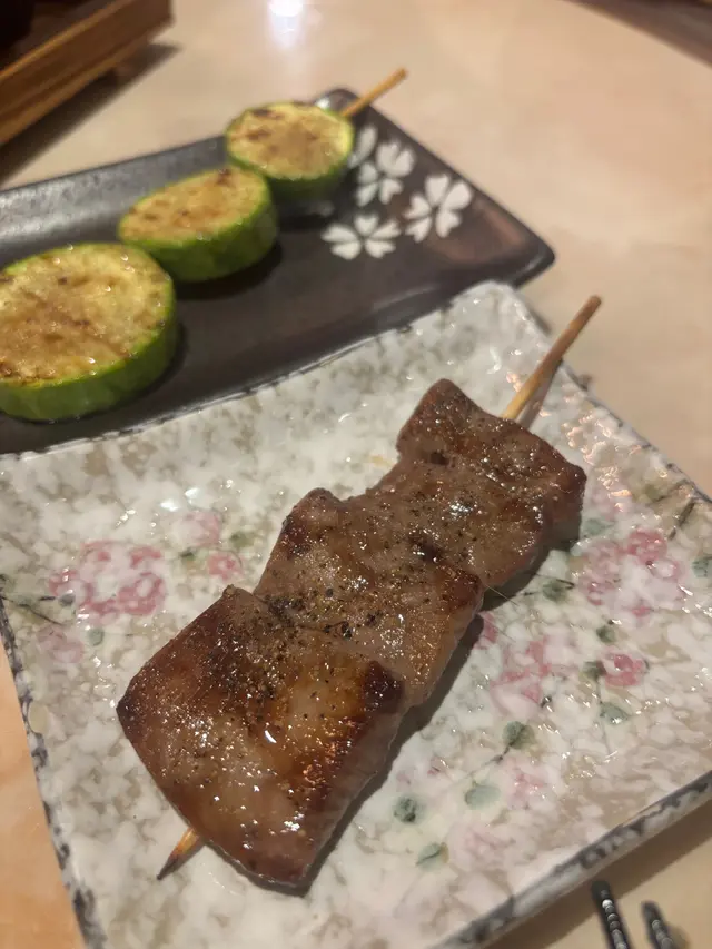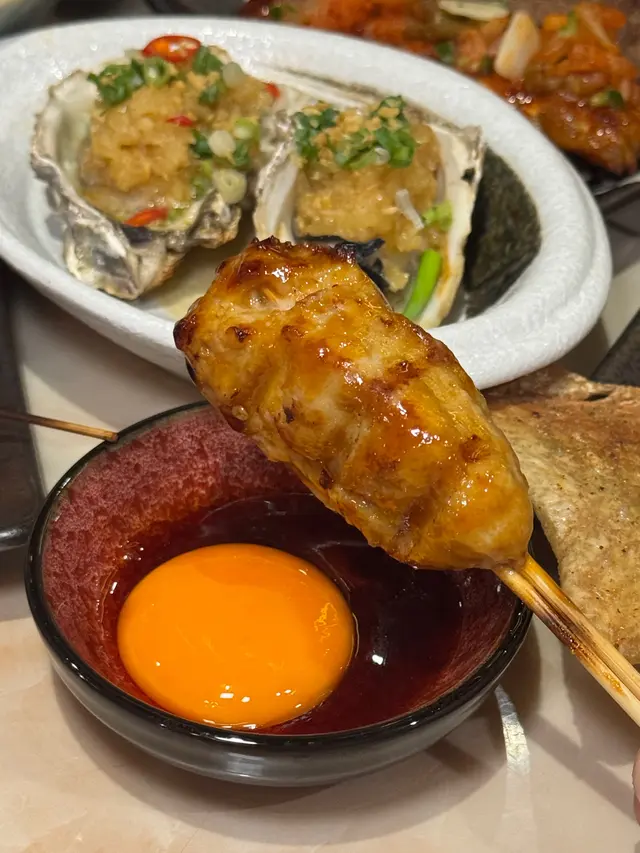 向來喜歡吃串燒,燒烤堂的串燒一直保持高水準,無論哪間分店的味道都一樣出色。串燒選擇多達百款,每次來都讓人感到驚喜,環境乾淨,晚上7點後幾乎滿座。生啤買一送一,串燒配上生啤真的是絕配,讓人盡情享受!蒜蓉燒廣島蠔 $48/2隻蠔肉飽滿,味道鮮甜,充滿蒜香,讓人食指大動。汁燒免治雞肉軟骨棒 (付月見) $36雞肉棒軟嫩,與汁燒蛋汁搭配,美味無比。豚肉節瓜波板糖 (付月見) $38豚肉片捲住節瓜片,口感層次分明,特別好吃。焦糖鰻魚芝士玉子燒 $28焦糖面層的玉子燒甜美可口,鰻魚肥厚,口感豐富。焦糖青蘋果鵝肝多士 $108多士香脆,鵝肝入口即溶,搭配青蘋果片酸甜解膩,令人驚喜。鹽燒鮮三黃雞腿肉 $28雞肉鮮美,啖啖肉,鹽燒的味道惹味,讓人回味。明太子燒飯團 $38明太子鹹香,飯團外脆內軟,十分飽肚。孜然燒蒜蓉茄子 $38茄子肉軟糯,孜然粉的味道濃郁,蒜香四溢。鹽燒白鱔 $48鱔皮香脆,肉質彈牙,鹽燒的味道非常惹味。福岡味噌松板豬 $28甜美入味的豬頸肉,爽口好食,令人滿足。燒芝士年糕 $28年糕煙韌,芝士醬滿滿,滋味十足。孜然燒西蘭花苗 $22西蘭花爽口,搭配孜然燒,非常開胃。牛油蜜糖粟米 $20燒粟米粒粒飽滿,加上牛油蜜糖,味道香甜。麻辣翠玉瓜 $16翠玉瓜大塊清脆,麻辣的味道令人驚喜。秘制燒羊架 $48羊肉軟腍多汁,帶有一絲羶香,非常美味。鹽燒豬肋肉 $24口感啖啖肉,鹽燒的原味好食,令人難忘。豚肉牛油果卷 $28豚肉包著軟滑的牛油果,加上沙律醬,美味滿分。蜜糖燒菠蘿 $18菠蘿甜美多汁,作為甜品完美無瑕。七寶生啤 $48生啤清爽,搭配串燒絕對好夾,買一送一的優惠更是超值!…查看更多