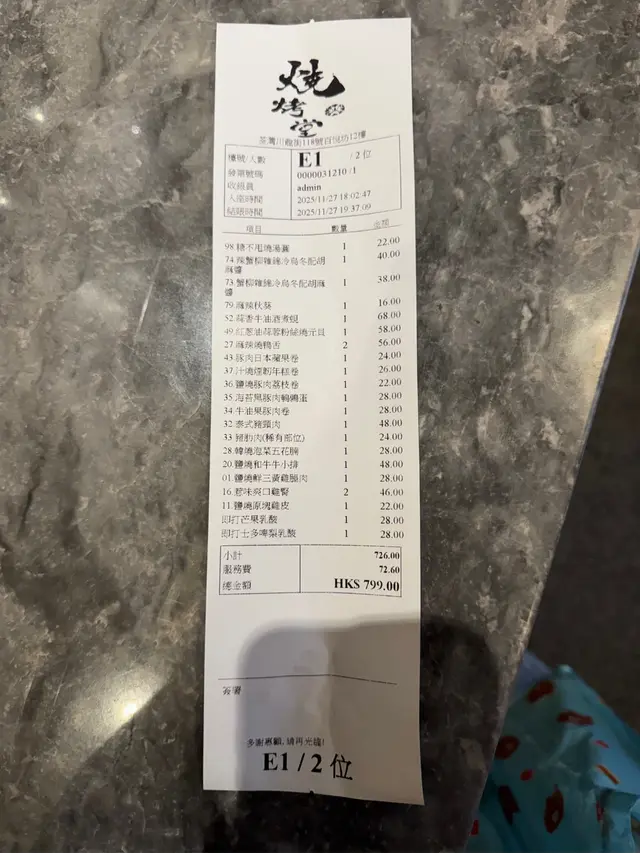 燒烤堂 (荃灣) 網址: https://s.openrice.com/QrbS0aZuD00 地址: 香港荃灣川龍街118號百悅坊12樓 電話: +852 98868397