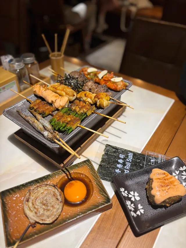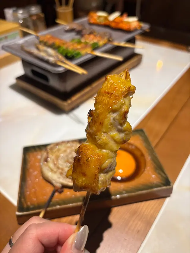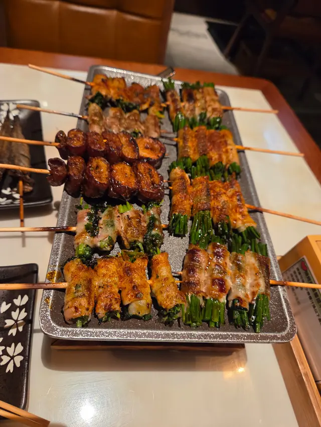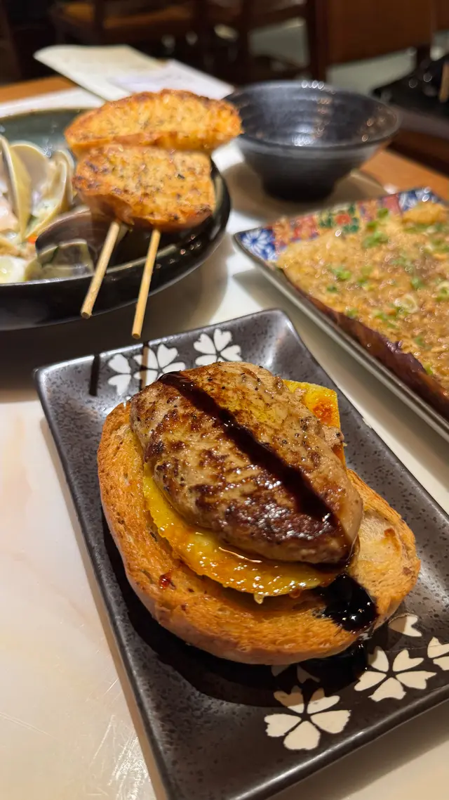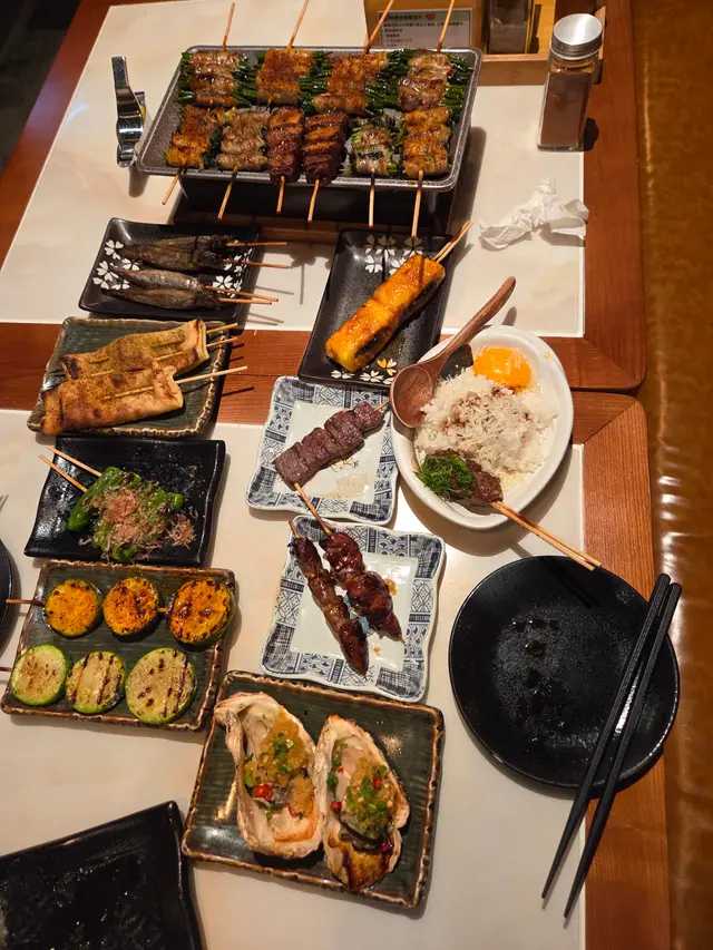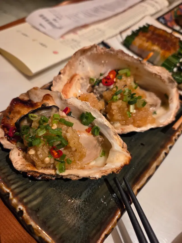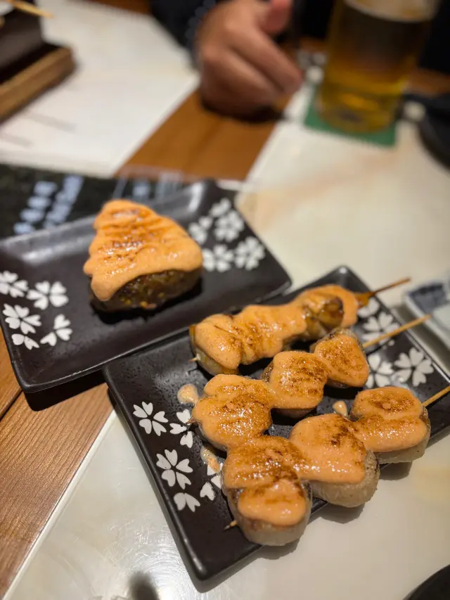 朋友想吃串燒,第一時間就想到燒烤堂。這裡有超過百款串燒,每次來都能嘗試不同的美味,絕對令人驚喜。店內環境寬敞乾淨,我們到達時幾乎滿座。食物方面,我們早已做好選擇,廣島蠔、鵝肝多士、玉子燒、波板糖、松板豬和豬大腸都是必食之選,配上一杯大生啤,實在完美。麻辣翠玉瓜 $16翠玉瓜大塊清脆,加上麻辣非常惹味。鹽燒日本銀杏 $24燒銀杏口感幾軟糯,味道清淡。和牛棒配松露一口飯 $58類似漢堡扒,加入芝士碎和蛋汁,撈飯一起食,味道濃郁,令人驚喜。豚肉節瓜波板糖 (付月見) $38豚肉片捲住節瓜片,口感層次分明,特別又美味。焦糖鰻魚芝士玉子燒 $28玉子燒甜美可口,搭配厚實的鰻魚和焦糖脆口的面層,口感豐富。焦糖青蘋果鵝肝多士 $108多士外脆內軟,鵝肝肥厚,入口即溶,令人非常滿足。浜燒日本活北寄貝 $58北寄貝軟嫩多汁,味道鮮甜,湯汁濃郁。蒜蓉燒日本廣島蠔 $48/2隻蠔肉飽滿,味道鮮甜,蒜蓉滿滿,必食之一,每人食兩只先夠。雞皮墨魚滑 $38雞皮香脆,魚滑軟彈,層次感十足。日式燒白鱔 $48鱔肉肥厚,醬汁味濃,加上蔥絲,風味獨特。椒鹽燒鴨舌 $28鴨舌軟嫩好嚼口,椒鹽香口惹味。鹽燒豚肉荔枝卷 $22豚肉捲住甜美多汁的荔枝,咸甜滋味。福岡味噌松板豬 $28豬頸肉爽口彈牙,味噌入味,甜美可口。七味汁燒豬大腸 $24豬大腸軟嫩彈牙,無異味,滷得入味,口感極佳。厚切鹽燒牛舌拖羅 $48牛舌彈牙,味道濃郁,汁多鮮美。鹽燒A4宮崎和牛 $58和牛肉質軟嫩,油脂豐富,牛味香濃。明太子雞腿肉 $28雞肉大串鮮美,搭配滿滿的明太子醬,鹹香惹味。汁燒免治雞肉軟骨棒釀冬菇 $28冬菇軟彈多汁,釀入免治肉和爽脆的雞軟骨,口感特別過癮。七寶生啤 $48生啤買一送一,超值大杯,酒味清爽,與串燒搭配一流。…查看更多