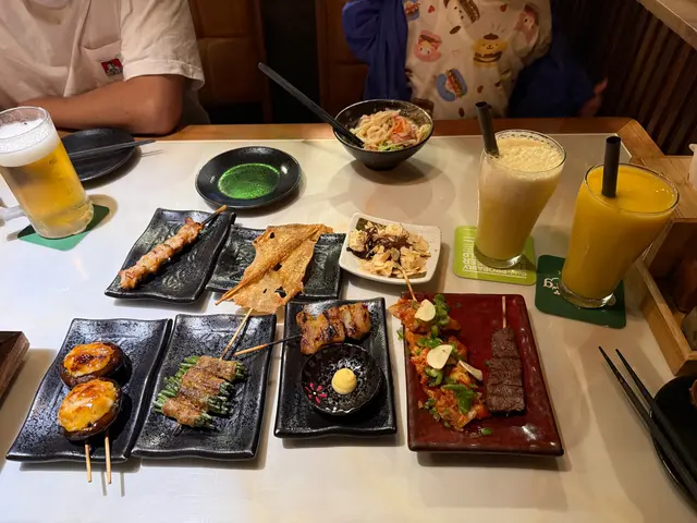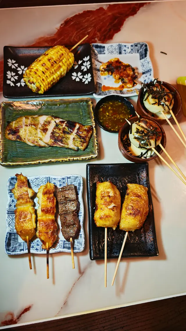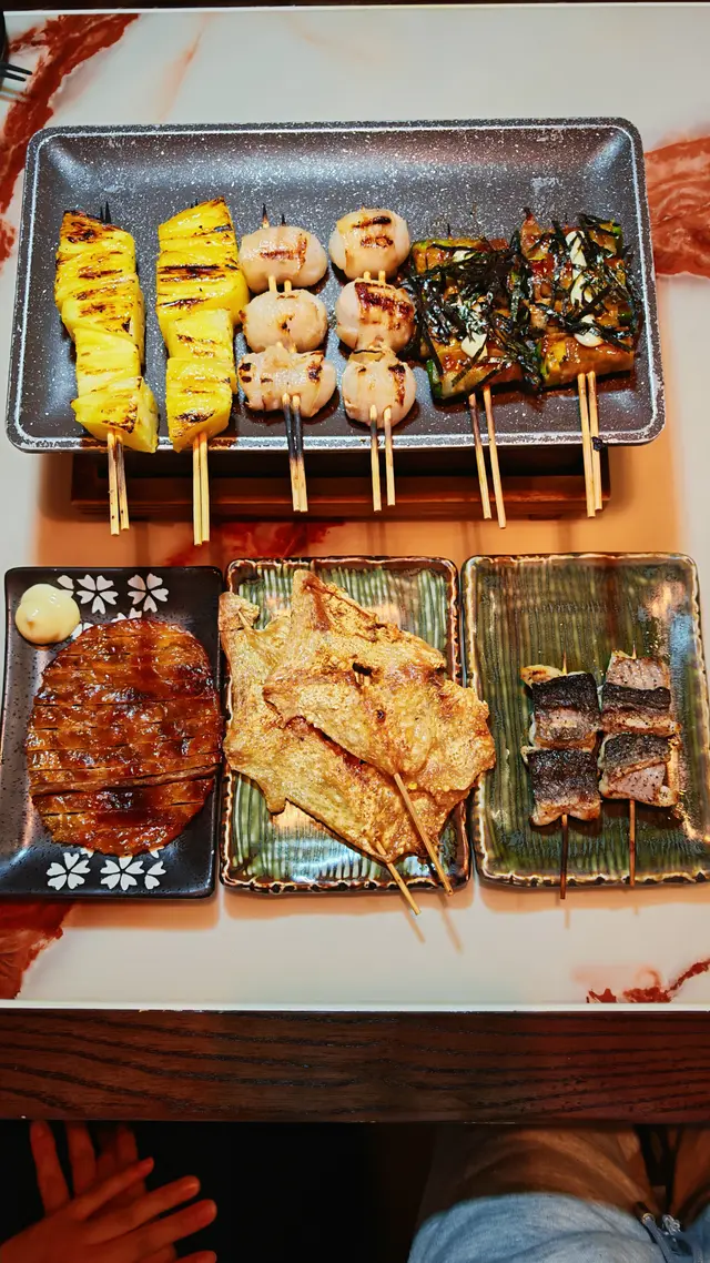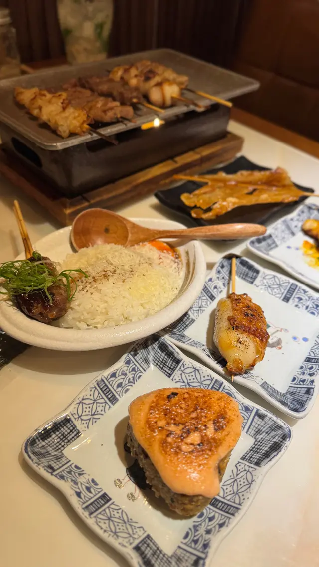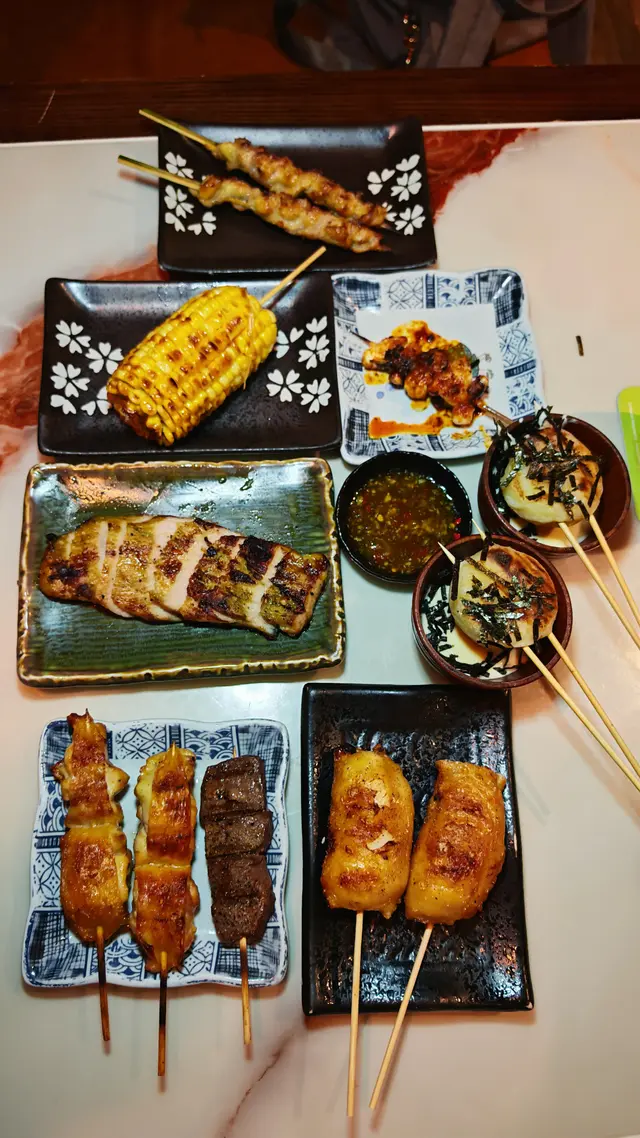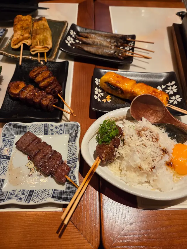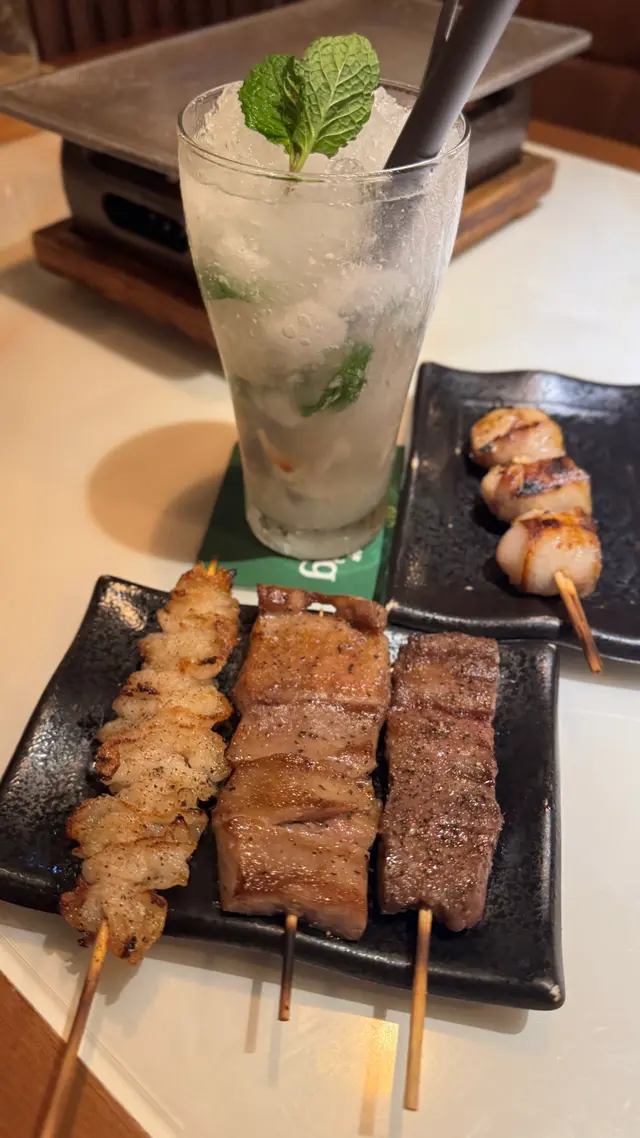 朋友想吃串燒,第一時間就想到燒烤堂。這裡有超過百款串燒,每次來都能嘗試不同的美味,絕對令人驚喜。店內環境寬敞乾淨,我們到達時幾乎滿座。食物方面,我們早已做好選擇,廣島蠔、鵝肝多士、玉子燒、波板糖、松板豬和豬大腸都是必食之選,配上一杯大生啤,實在完美。麻辣翠玉瓜 $16翠玉瓜大塊清脆,加上麻辣非常惹味。鹽燒日本銀杏 $24燒銀杏口感幾軟糯,味道清淡。和牛棒配松露一口飯 $58類似漢堡扒,加入芝士碎和蛋汁,撈飯一起食,味道濃郁,令人驚喜。豚肉節瓜波板糖 (付月見) $38豚肉片捲住節瓜片,口感層次分明,特別又美味。焦糖鰻魚芝士玉子燒 $28玉子燒甜美可口,搭配厚實的鰻魚和焦糖脆口的面層,口感豐富。焦糖青蘋果鵝肝多士 $108多士外脆內軟,鵝肝肥厚,入口即溶,令人非常滿足。浜燒日本活北寄貝 $58北寄貝軟嫩多汁,味道鮮甜,湯汁濃郁。蒜蓉燒日本廣島蠔 $48/2隻蠔肉飽滿,味道鮮甜,蒜蓉滿滿,必食之一,每人食兩只先夠。雞皮墨魚滑 $38雞皮香脆,魚滑軟彈,層次感十足。日式燒白鱔 $48鱔肉肥厚,醬汁味濃,加上蔥絲,風味獨特。椒鹽燒鴨舌 $28鴨舌軟嫩好嚼口,椒鹽香口惹味。鹽燒豚肉荔枝卷 $22豚肉捲住甜美多汁的荔枝,咸甜滋味。福岡味噌松板豬 $28豬頸肉爽口彈牙,味噌入味,甜美可口。七味汁燒豬大腸 $24豬大腸軟嫩彈牙,無異味,滷得入味,口感極佳。厚切鹽燒牛舌拖羅 $48牛舌彈牙,味道濃郁,汁多鮮美。鹽燒A4宮崎和牛 $58和牛肉質軟嫩,油脂豐富,牛味香濃。明太子雞腿肉 $28雞肉大串鮮美,搭配滿滿的明太子醬,鹹香惹味。汁燒免治雞肉軟骨棒釀冬菇 $28冬菇軟彈多汁,釀入免治肉和爽脆的雞軟骨,口感特別過癮。七寶生啤 $48生啤買一送一,超值大杯,酒味清爽,與串燒搭配一流。…查看更多