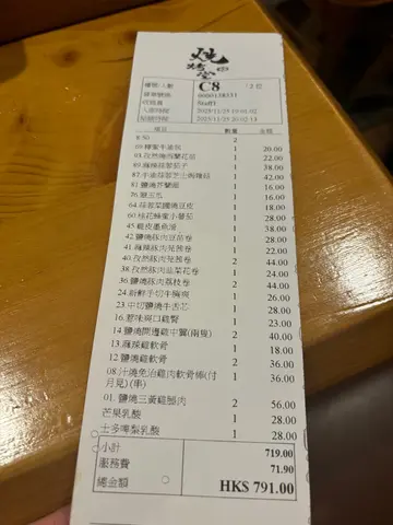見到 thread 友不停推介,就知一定係正嘢。終於去試,結果每一款都唔錯,氣氛又好,連平日夜晚都 full、而且好似有時限,完全理解點解咁受歡迎〔 燒芝士年糕 〕外層帶少少炭香,唔係平時油炸嗰種 heavy 版本。煙韌帶微焦、鹹香 balance 得好靚,一開頭已經好驚喜。〔 麻辣蒜蓉茄子 〕辣度、蒜香、鹹香全部到位,啖啖入味,邪惡得嚟又好送酒。味道濃但唔死鹹。〔 焦糖青蘋果鵝肝多士 〕鵝肝香濃幼滑,焦糖外層帶脆感,中間夾住青蘋果片,酸甜中和油脂,層次好靚。呢款真係有記憶點。〔 燒日本活北寄貝(x2)〕外面唔多見,仲要厚肉又鮮甜,多汁彈牙,完全食到火喉同鮮度。值得一試。〔 鹽燒原塊雞皮(x2)〕成大片咁上枱,夠晒霸氣。燒到超乾身、脆口,重點係唔油。雞皮控會瘋狂。(見到 thread 友推介 燒馬友 $198,本來好心動,不過太飽留返下次!𝘼𝙡𝙡 𝙄 𝙊𝙧𝙙𝙚𝙧𝙚𝙙香草蒜蓉包 – 烤到外脆內軟,蒜香同香草味翠玉瓜豚肉節瓜波棒糖 – 勁多thread友推介,豚肉帶油香但唔膩,配上節瓜爽甜,口感對比好明顯,但我就一般秘制燒羊架 – 羊味不羶、肉質嫩滑,帶住淡淡香料味,意外地好食新鮮手切牛胸爽 – 咬感爽而不韌,肉味濃郁又帶肉汁,加麻辣粉食正鹽燒和牛牛小排 – 油脂平均、入口即化,鹽香突出牛味本身鹽燒開邊雞中翼 – 外皮烤到脆香,肉質仍然 juicy麻辣雞軟骨 – 麻辣味香、軟骨爽口,非常之下酒,是越食越上癮嗰種汁燒鮮雞肝 – 口感軟綿,醬汁偏甜香,內臟味突出但唔腥,超中意食呢個!鹽燒三黃雞腿肉(x2) – 雞腿肉肉汁充足、鹽香剛好…查看更多