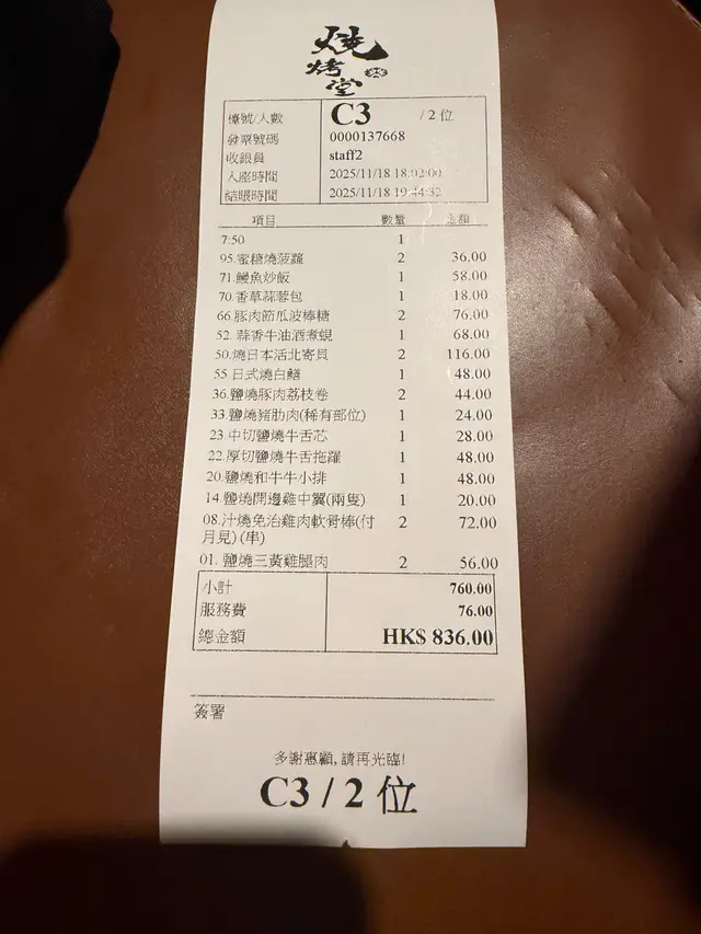 燒烤堂 (銅鑼灣) 網址: https://s.openrice.com/QrbS0rJiC00 地址: 香港銅鑼灣登龍街28號永光中心3樓 電話: +852 98867303