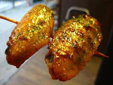 再等了一會,<<燒雞翼>>也做好了,特別的是那些紫菜碎在雞翼上被其熱力加熱後,散發出一陣陣的紫菜香味,令人難以抗拒不得不吃。雞翼的外皮燒得非常脆口,內部還剩大量的肉汁,水準絕對不在居酒屋之下,好味道!