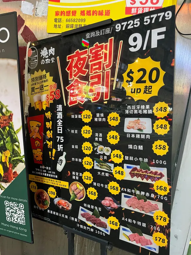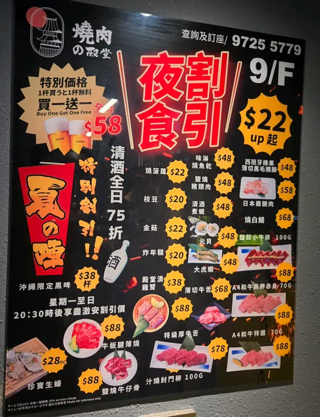 銅鑼灣鬧市中嘅燒肉店,多款打卡拼盤及二人套餐人均$300起,打卡必備嘅九宮格set「殿堂九品盛」有齊九款唔同種類嘅部位,肉質鮮嫩,多種類唔洗煩,厚切牛舌正。鍾意飲酒嘅更多開心清酒全日都有七五折!沖繩生啤買一送一!真喺性價比很強。都試左佢啲無酒精特飲,岩用嚟配燒肉。除左肉仲有海鮮,牛油鹽燒元貝大大粒香噴噴,飲開啤酒可以叫魚乾送下酒。唔夠飽仲可以叫個玉子飯,其實個Set又叫下其他野都夠三條友食,鍾意飲酒當買一送一生啤真喺抵過去酒吧!…查看更多