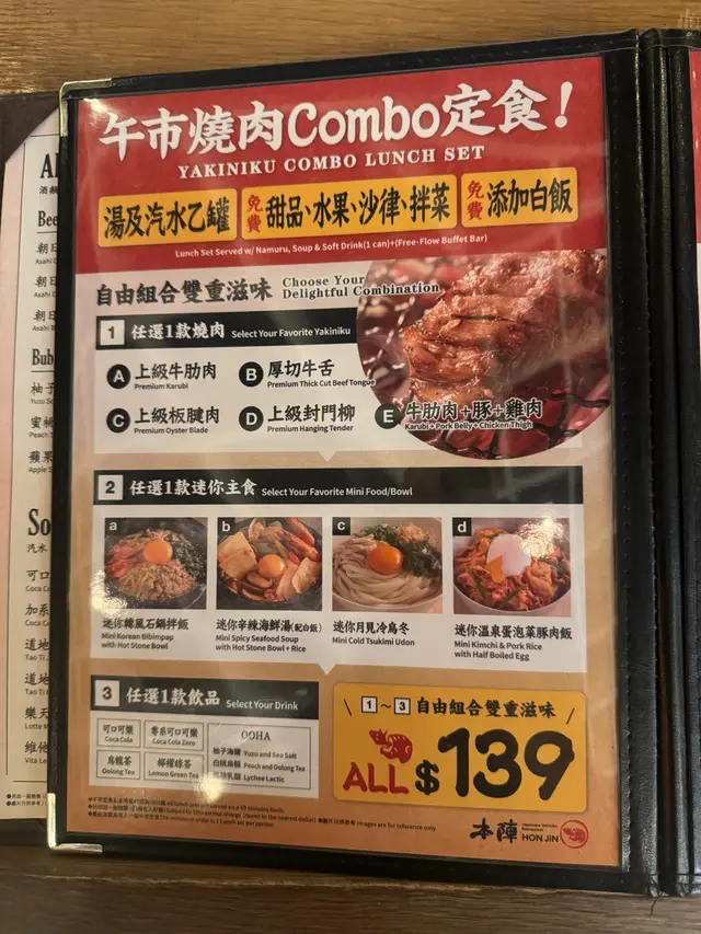 想黎個快食lunch但係apm好多都爆曬諗住食茶木但排隊都排咗2個圈果斷放棄嘅時候同層得本陣見到有定食set就入咗去揀黎揀去都係燒肉吸引d😂決定唔嘥時間諗即刻落單我哋分別揀咗厚切牛舌 & 上級封門柳跟餐有罐嘢飲、迷你主食(我哋兩個都揀咗月見冷烏冬)、自助吧任食套餐嘅封門柳整碟有6件係屬於juicy嘅~幾入味肉質鬆軟得黎唔會有筋牛舌都有彈性而睡鮮嫩嘅整體口感都唔錯另外仰有自助任食吧可以拎小菜、水果同埋自製沙律成件事即刻開心好多🤣咩都有得玩嘛~價錢黎講嘅話呢個set我就唔會encore了🙈因為份量唔算多肉味都爭d 牛味唔夠濃😢對比之下我會覺得其他舖頭嘅選擇會好d(原諒我因為快食嘅關係真係影得一張相🤣