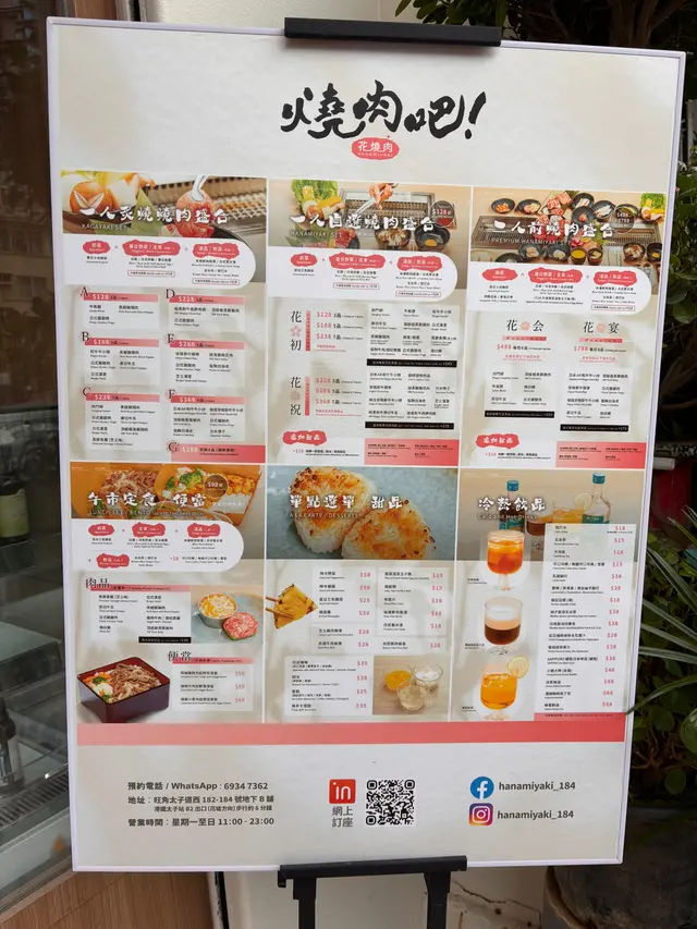 燒肉吧!花燒肉 (旺角) 網上訂座即賺Rice Dollars 網址: https://s.openrice.com/QrbS0jNCF00 地址: 香港旺角太子道西184號金寶樓地下B號舖 電話: +852 69347362