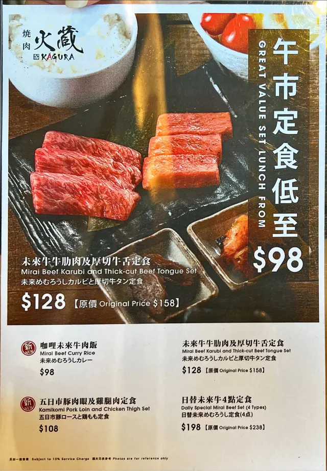 今日去咗 AIRSIDE 嘅「燒肉火蔵 KAGURA」🔥呢間主打高質日式燒肉,肉控一定會開心到飛起🥩🍱 我哋叫咗「野原未來牛二人前」$528入面有齊沙律、豆腐湯、白飯同多部位牛肉(包括西冷、肩胛、牛心、赤身等),一份set啱啱好兩個人share😋🥩 牛肉油花靚到不得了💥燒嘅時候香氣超勁,輕輕一燒脂香即出,入口嫩滑又帶牛香,尤其是西冷位真係好正🤤脂香溫柔、肉味濃郁,唔需要沾醬都已經好出色。🔥 「野原未來牛」肉質明顯優質,唔油膩但香氣厚,燒完仲有輕微甜香味留喺口中,滿足感爆棚~🍚 配菜部分都唔錯,北海道薯仔沙律清爽解膩🥔,豆腐湯熱辣辣好入味,整體set menu平衡得好好。🏠 環境方面氣氛偏靜,燈光柔和✨座位間距闊,唔會焗促;店員幫忙燒肉,態度有禮又細心,完全加分💯…查看更多