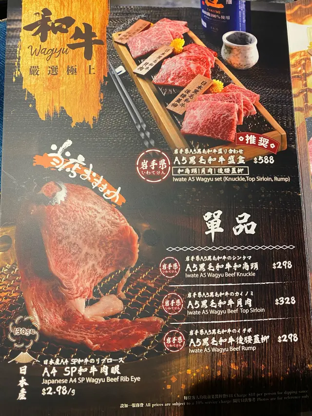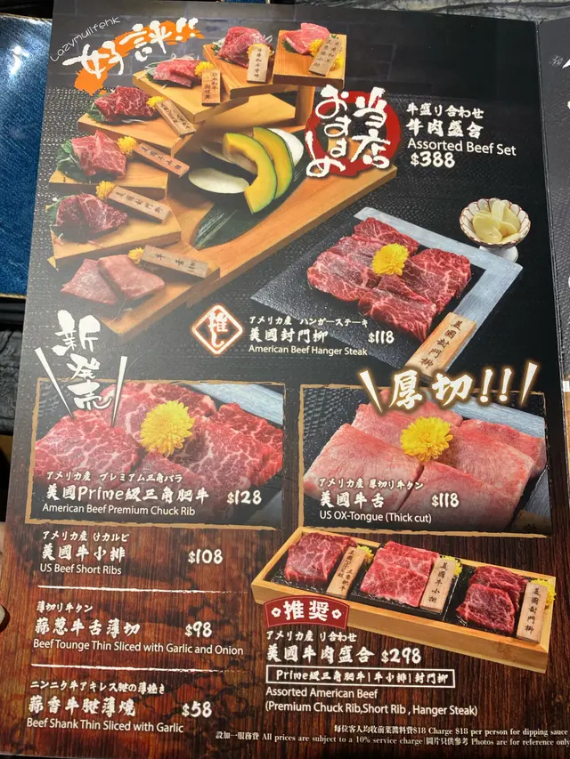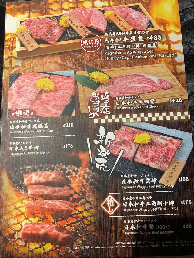 朋友生日佢揀咗呢間燒肉佢話好好味我自己本身都想試好耐所以就黎食星期五本身佢話full booking 要我坐bar 枱最後都比四人枱同場人都唔算多叫左一set 豬肉一set 牛肉一碟腸先講牛肉set正正常常唔算咩太大驚人仲要個一片又唔大個set 豬每一樣都好咸食唔到豬味一咬就係豬油同咸基本上件件好似一樣香腸就正常發揮所以個人感覺好一般但服務態度係幾好同貼心