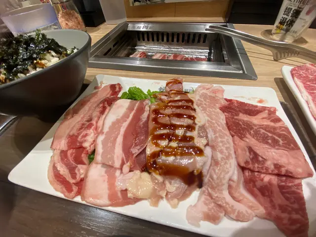 有時候得閒都會自己一個人去食燒肉,但去開個啲連鎖式燒肉店都係限定一個個set,然後再令加肉。以我一個食肉獸來講,每次咁樣食一食,都差唔多要二百蚊,所以都想揾啲可以一個人仼食燒肉既店舖。點知最近又真係揾到!仼食餐牌分咗3個Level ,而我自己就揀咗Level 2基本配置都係有飯有湯同泡菜佢哋首先會直接比碟肉你先,食完唔夠可以寫紙再加。飲品好似另計,但水就仼你飲 ~而飯隔離個碟係Level 1既肉。再隔離個碟就係 Level 2既肉。依碟係Level 1既肉,但燒咗幾塊先記得影相。依碟有齊豬牛雞,就正正常常,唔會有臊味。Level 2既肉~依碟就係牛小排、雞頸、牛舌。總括而言,我覺得係一間幾好食既燒肉,至少可以滿足自己一個人食燒肉,但又想仼食既我🤣