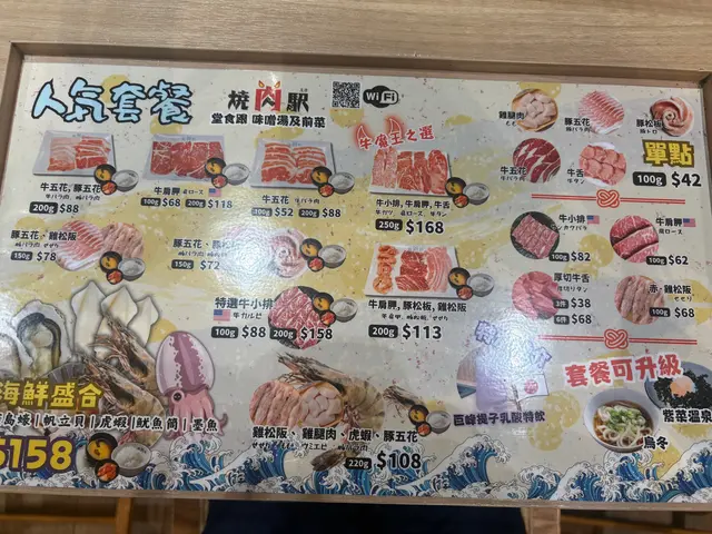 位於旺角既燒肉駅 一人燒肉·丼飯推出大滿足90分鐘任食放題🥳價錢由$158即嘆無限量燒肉,一人定多人都一樣可以盡興❤️✨燒肉駅90分鐘放題分成三款套餐,包括”山” ($158)、”海” ($228) 同”天” ($528),今次K揀左中間既”海”餐,可以任食美國牛小排、牛肩胛、牛舌、豚五花、豬頸肉、鹿兒島赤雞頸肉同半殼帆立貝等!😋一開始會成Set咁上枱,咁就可以一次過試勻幾款肉,岩食既就Encore啦!醬汁方面有燒汁、蒜蓉牛油汁、照燒汁、岩鹽同辣椒粉等提供。除左燒肉,套餐仲有紫菜飯、味噌湯同泡菜。另外蔬菜eg. 生菜、金菇、翠玉瓜同粟米粒都係可以任食既!一人一個爐燒肉都好方便~ K最愛美國牛小排,輕輕燒一燒就食得,夠juicy!赤雞頸肉口感好爽彈、雞腿肉都啖啖肉咁😝好嫩滑,帆立貝都唔錯、味道幾甜,仲可以用生菜包住燒肉黎食,減輕膩感!蔬菜建議落蒜蓉牛油汁一齊煮😛味道好香😚📍 燒肉駅 一人燒肉·丼飯 (旺角)旺角西洋菜南街200號地舖