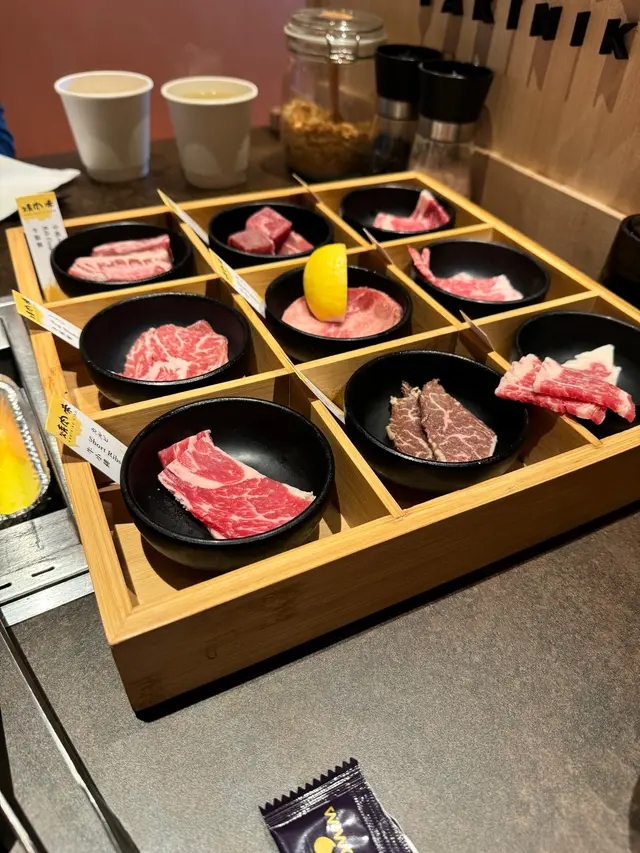 問一個問題,商場「The LOHAS」究竟有冇意思?查字典就會知道 LOHAS = Lifestyle Of Health And Sustainability,這種「健康與可持續發展嘅生活風格」也是「康城」這個新社區嘅發展概念。不過,搬咗入將軍澳區咁多年,睇住康城嘅發展,覺得Lohas 只是 gimmick;新社區當然有很多新規劃及設計元素,但睇唔到究竟有幾「LOHAS」。講返「The LOHAS」,整個商場以日常生活所需定位,尤以食肆佔大多數;配合大型屋苑商場,餐廳也以大眾化及中檔次為主。【燒肉帝】在2021年底開業時,竟然主打高級廚師發辦日式燒肉,晚市人均消費$600起錶!要食這個價位的日式燒肉,正常都會出去尖沙咀或銅鑼灣,返屋企樓下商場開餐,點會食咁貴?當時已估一定做唔住。果然,到了2022年中,就轉型日式燒肉放題;有三四個唔同級數的價位,但仍然嘗試走中高檔路線,保留了日本和牛作為最貴檔次的燒肉放題。去到2023年中,簡單裝修後再次轉型,檔次稍稍再往下調,供應全新日式燒肉放題餐單、及更為相宜的午市套餐;這次終於配合市場定位。今個星期日,一家三口也終於第一次光顧【燒肉帝】。雖然已經轉型為中檔日式燒肉店,但仍然保留了當初開業時的高檔日式燒肉店的裝修佈局,空間寬敞、卡座寬闊。烤肉爐頭也是高級燒肉店的款式,只不過用廉價即棄燒烤網代替原本受熱均勻(但要花時間清洗)的開洞不鏽鋼板。每張枱面放了粗粒喜馬拉雅岩鹽、黑胡椒粒、柚子醋、燒肉醬汁及香炸蒜片,供客人按喜好自行調味。午餐當然唔會食放題,午市定食套餐也有六款燒肉及三款其他普通定食,每款燒肉套餐又有兩個不同重量供客人選擇。全家人都係食肉獸,一齊揀了燒肉套餐。沙律水準正常。前菜小食漬帶子裙邊有腥味,好難食。味噌湯唔夠熱。最最奇怪竟然未開餐已送上甜品日式麻糬。牛の味(牛胸腹 + 牛板腱)(200g)($122) 見到賣相,已經打過突。點解牛肉好似啱啱從冰櫃取出,未完全解凍、硬梆梆?另外,點解切得咁薄?寧可少幾片牛肉,切得厚啲,反正按重量計算。事實上,亦只有優質日本和牛才適合大大片薄切,做成焼きしゃぶ。簡而言之,唔似心目中的日式燒肉。牛胸腹好多肥脂,以為係五花豬肉片,咬下去有不少筋膜。牛板腱肉質粗嚡,肉汁少。另外兩份午市燒肉定食的牛肉,同樣未完全解凍、硬梆梆,亦同樣切得太薄。皇牌の選(牛小排+ 牛頸脊)(200g)($172) 的兩款牛肉比較好味,但味道分別不大。兩者皆有適當油花及牛味,冇筋膜、有肉汁。牛迷の選(牛小排+ 牛胸腹 + 牛舌)(150g)($122) 的牛小排賣相同牛胸腹差不多,及不上皇牌の選的牛小排;側面證明牛肉質素唔穩定。牛舌軟身,口感少少煙韌彈牙,唔係最靚嘅牛舌芯,但味道都算尚可。講味道、講牛肉嘅質素,就真係好一般,但又真係好抵食。「日出康城」居民仲有八五折優惠,抵上加抵。住喺康城,想食日式燒肉嘅話,【燒肉帝】係一個抵食嘅選擇。…查看更多