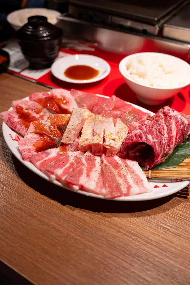 7月1日見有71折,飲品都有折,所以入去食燒肉套餐。我地揀左原價$498的[志]盛 燒肉套餐,加錢要白飯及味噌湯,或冷麵套餐。地方都寬敞舒適,2人也可以坐卡位,夠哂位放食物及坐的舒服。套餐有鹽味牛舌、黑毛和牛腹柳小排、黑毛和牛上肩肉、極上厚切牛胸腹柳、蔥鹽味雞腿肉、黑豚,2人前份量十足又豐富。鹽味牛舌好薄好快熟,口感爽脆微彈,味道好。黑毛和牛腹柳小排,好嫩有咬口,油脂分佈平衡。黑毛和牛上肩肉,柔軟富肉汁,牛味濃郁。極上厚切牛胸腹柳,超厚超份,燒至外層香口,剪成小塊燒熟即食,肉感滿滿,牛味突出,多肉汁又香口。蔥鹽味雞腿肉,加左蔥鹽好惹味,雞腿肉好嫩彈。黑豚好肥美五花肉,好有油香,最好用生菜夾著食或配泡菜食,消膩又酸酸辣好開胃。。冷麵夠哂冰凍爽口,麵質彈牙,配熱辣辣燒肉,真係降溫必食,又可清清味蕾。日本米吸哂燒牛肉的肉汁,好正,燒肉配白飯也是必須。檸檬highball及檸檬燒酒,好清爽又唔會太重酒味,清新爽口,飲完少醉,氣氛很好。…查看更多