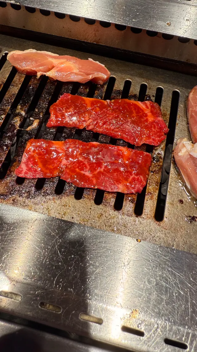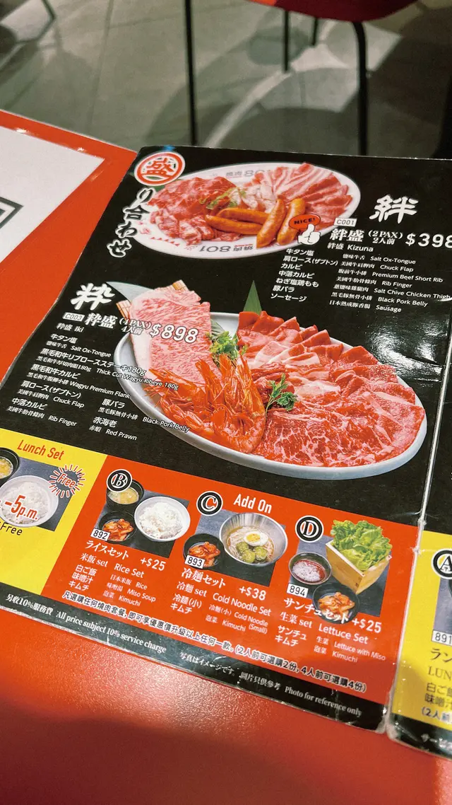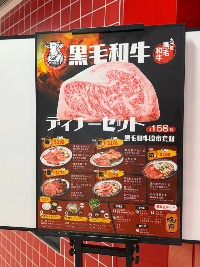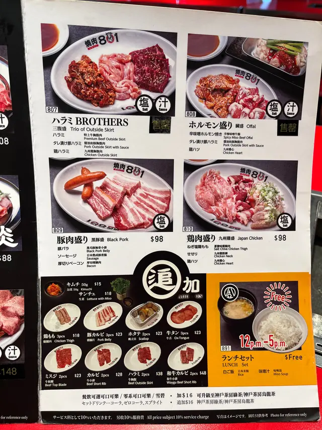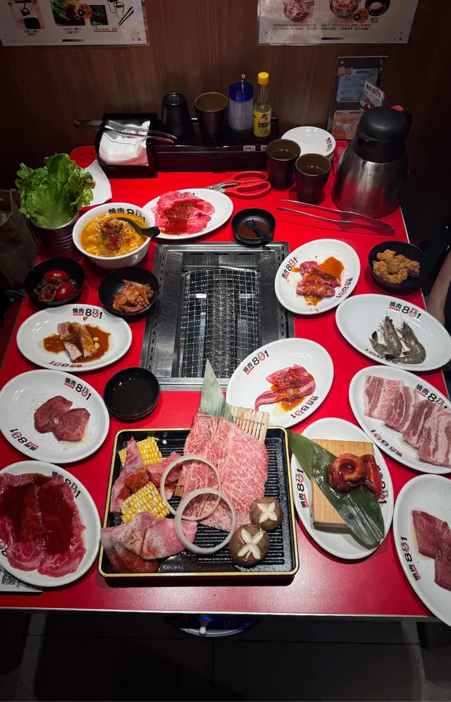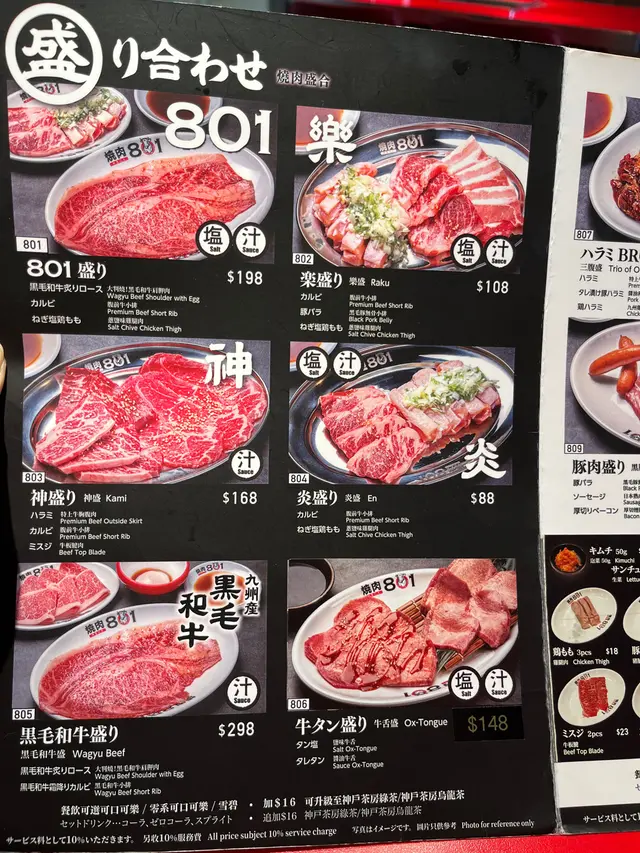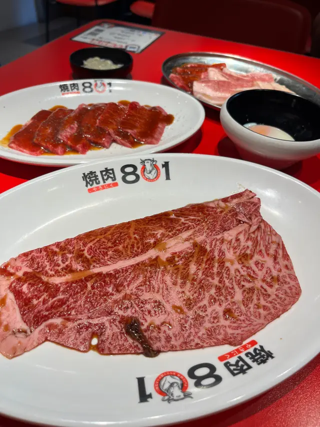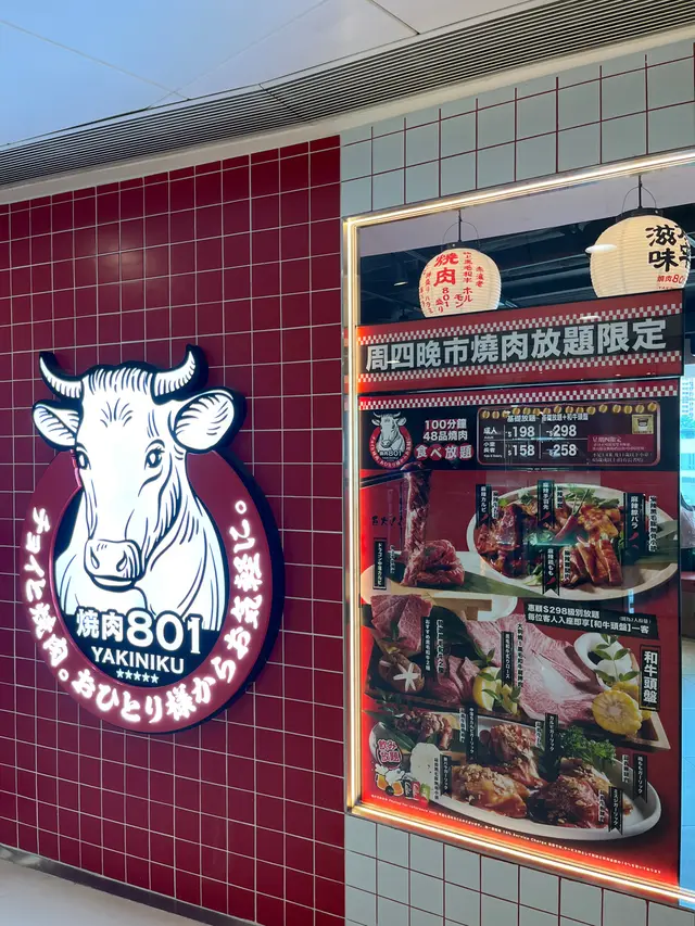 好耐冇食過燒肉放題🔥上星期同老公去左位於荃灣廣場既Yakiniku 801✨餐廳環境乾淨舒服,空間感大!一入座店員就向我地介紹逢星期四限定既放題🥩有兩款唔同價錢既放題💥✿ 100分鐘放題套餐(逢星期四17:00-21:00) ✿✧ 基本放題+精選801頭盤:成人$198、小童/長者$158✧ 基本放題+黑毛和牛頭盤:成人$298 、小童/長者$258我地揀左基礎放題+黑毛和牛頭盤💗食物以QR Code落單,送上既速度好快,超方便👍🏻🐮和牛頭盤有黑毛和牛肩胛肉、特選黑毛和牛🥩✨和牛油脂分佈平均,食落口感細嫩,唔會韌,牛味香濃,勁高質🥰🥩肉類肉類款式有極多!!而且仲可以揀唔同醬汁,包括燒肉汁、檸檬汁🍋配肉類味道好夾🤩牛方面有特上牛肋條肉、牛肋骨條肉、鹽味牛舌、牛五花等等~其他肉類方面有黑毛豚無骨小排、厚切煙肉、蒜香雞腿肉、雞翼等等🐷🐥身為雞翼控當然要雞翼✌🏽雞翼有分原味同麻辣味!食落口好夠Juicy入味,雞肉好嫩滑!牛舌我都好鍾意❤️口感好爽,不斷encore🥳黑毛豚有驚喜,好厚切!肉質鬆化,味道濃郁,又唔會鞋口~滿足💕🦐海鮮除左肉類,海鮮有赤海老同魷魚🦑赤海老好新鮮,肉質細膩~魷魚爽口彈牙,好有咬口,唔會太韌🥰🥢揚物、湯、米麵佢既炸物款式好唔錯,有炸薯條同唐揚炸軟骨,熱辣辣,好香口😋另外仲有章魚小丸子🍡、日本米飯、紫菜飯、咖喱飯、泡菜冷麵🍜、叉燒烏冬、檸檬冷麵等等。我同老公分別點左紫菜飯同泡菜冷麵,紫菜飯份量好多,紫菜既鮮味同米飯味道好夾👍🏻泡菜冷麵清爽可口,麵條順滑,配搭酸辣既泡菜,好開胃,夏天食好消暑💦🧃飲品加$20就可以升級無酒精類罐裝飲品無限暢飲~可以揀可口可樂/Coke Zero/雪碧/烏龍茶/清熱菊花茶/檸檬紅茶/荔枝紅茶/巨峰提子等等💜如果鍾意飲啤酒🍻可以加$58升級生啤無限暢飲🍺🍮Haagen Dazs🍦食燒肉食到最後一定要食返雪糕、雪條降降溫😝 放題包每人一杯Haagen Dazs 雪糕杯🥰🍦食完大滿足😌…查看更多
