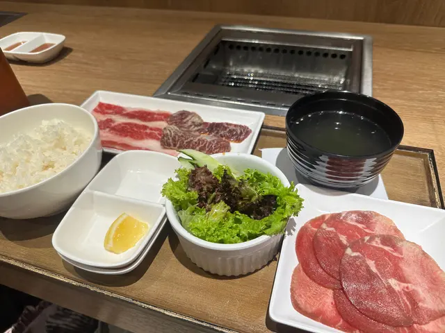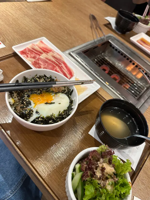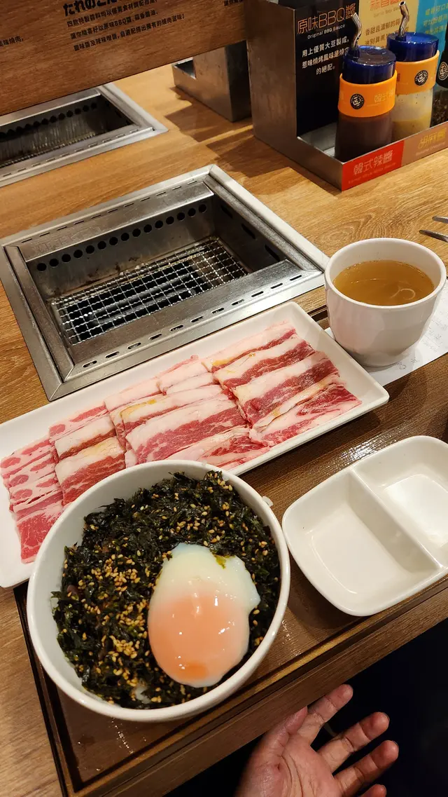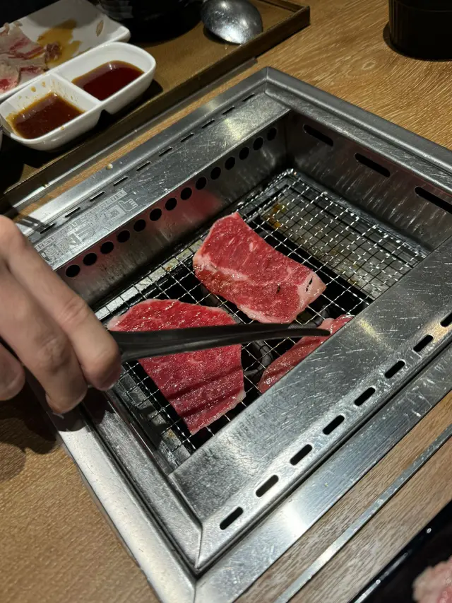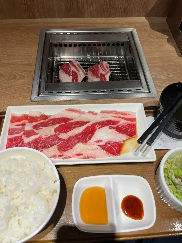 平時喺葵芳行街一直都見到好多人排隊,今日夜晚6:00左右見到比較少人,即刻同女朋友衝入去試吓。我哋坐喺最前面嘅吧台,兩個人一人一個爐,但我見到中間嘅一啲位需要兩個人共用一個爐,食之前可以注意一下。睇睇最平嘅100g燒肉套餐都只係五十幾蚊,套餐跟左個飯同碗麵豉湯,小食就可以揀沙律或者泡菜,我哋就揀咗沙律。我哋兩個平時就唔係食好多夜嘅人嚟講,食完就會覺得啱啱好飽。燒肉嘅調味料幾好,特別係個BBQ醬汁,幫個燒肉加好多分。總括係肚餓口痕冇咩錢想食燒肉嘅一個好選擇😋查看更多