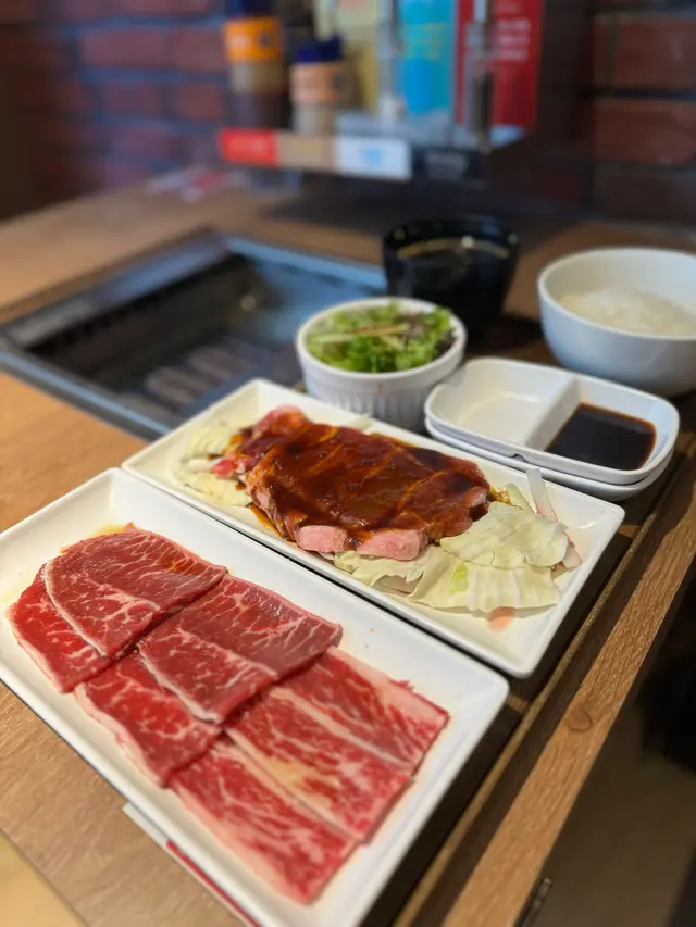 一向奉行肉食主義的小人,日式燒肉乃至愛極品!好笑的是今次竟然由日本的朋友推薦此超級平價、兼且高質的燒肉店相聚一番,何其巧合!踫巧餐廳推出薩摩黑毛和牛的套餐,豈有放過的道理,旋即一試!套餐的牛部位分別為牛肩肉、赤身與及牛五花。牛肩肉和赤身肉味豐腴,不管單吃還是佐飯皆甚滋味!牛五花吃的是脂香,燒完的肉泛著濃濃的油光,入口潤滑不已,令人再三回味!250克的黑毛和牛被我倆風捲殘雲,暴風式的掃個清光!而加配的豬五花雖然同樣油潤,吃下卻是爽而不膩,蘸點靈魂醬汁蒜味醬油與味噌,非凡的惹味!一口燒肉、一啖啤酒,人生一樂也!…查看更多