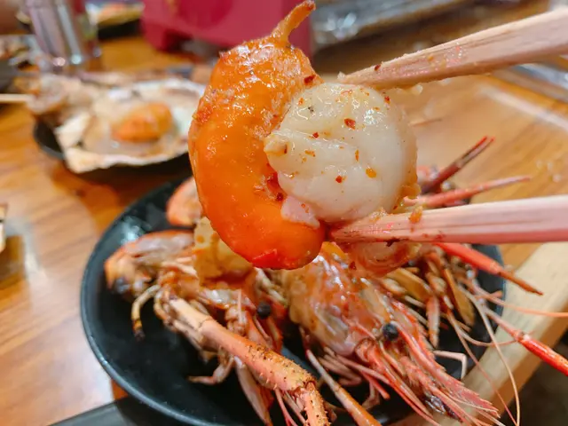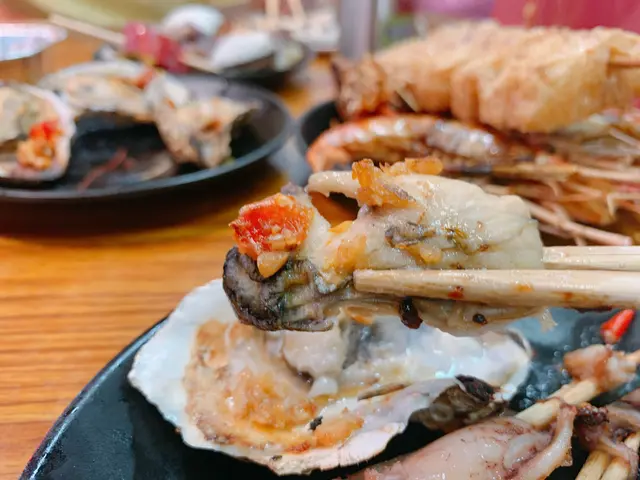 呢間燒烤店名叫做燒蝦蝦🦐🦐,顧名思意,都知道食蝦為主,地方夠大,乾淨企理,唔知食物質素如何呢?一齊入去試下!呢度最出名就系流水蝦🦐,食落去鮮蝦好新鮮,肉質鮮嫩。面頭撒上少少黑椒提高鮮味,無論口感同味道都做得非常出色。生蠔,肉汁超級多,好重海水味。🦪扇貝,啖啖肉。螺,螺頭肉好Q彈,好入味。海鮮陪佢地既啤酒就最適合喇,而且系任飲架!鴨胸同埋腸仔都系燒烤必不可少既食物,燒烤落少少孜然粉,同D食物都好夾。😋😋總體來好抵食,CP值非常高,🥂值得推介之選,最後要贊下D 雪糕,高質!…查看更多