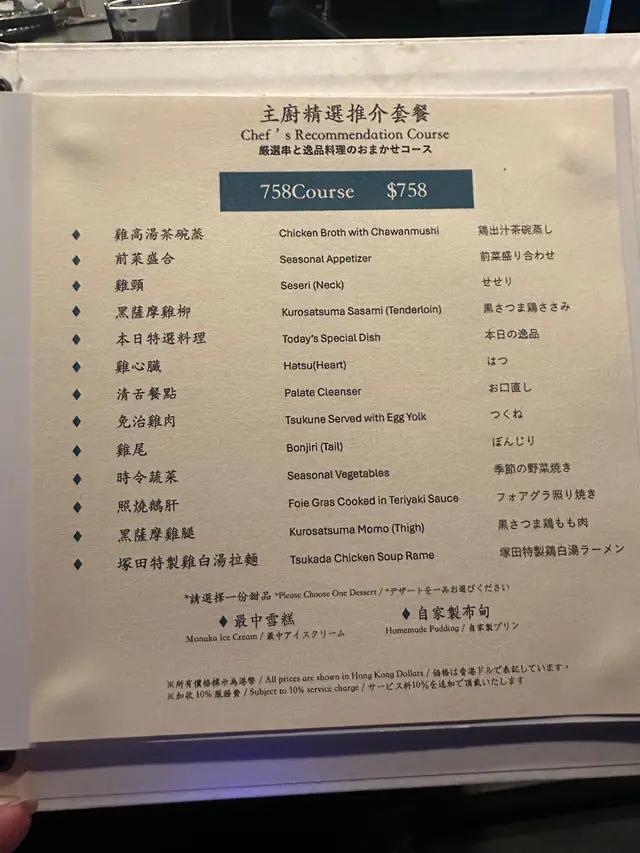 -𝐘𝐚𝐤𝐢𝐭𝐨𝐫𝐢 𝐓𝐬𝐮𝐤𝐚𝐝𝐚 🍢三訪來自日本東京的串燒名店 — 燒鳥塚田 近日原身炸串店同串燒店合併而成 依然主打雞肉串燒 同樣選用源自日本鹿兒島農場黑薩摩走地雞、日本銘柄雞並由日籍大廚以明爐日本備長炭烹調 而最近更推出左全新午市套餐同性價比高既燒鳥午市廚師發辦🐣🐣燒鳥午市廚師發辦/ おまかせ焼鳥コース($238)套餐包括 — 沙律、自家製豆腐、燒鳥5種、野菜串、塚田特製雞白湯拉麵燒鳥五串:分別係雞心、雞軟骨、雞脾肉、大蔥雞肉同月見免治雞肉串🍢雞心肉質緊緻帶彈性 帶有嚼勁而且滲出濃厚肉香;🍢雞軟骨外層炭香撲鼻 食落脆口爽彈 鹹香中帶骨膠原爽脆;🍢雞腿既雞皮烤至金黃酥脆 油脂滲入嫩滑的雞腿肉中 入口多汁 香氣四溢;🍢大蔥雞肉豐腴多汁 配上大蔥既清甜 油脂與蔥香交融 鹹香中帶點清新;🍢月見免治雞肉串混合軟骨後更彈牙 炭烤香氣濃郁 沾上特製月見汁 鹹鹹甜甜 蛋液包裹住 食落滑嫩細膩塚田雞白湯拉麵 每次食都覺得好好味 麵條新鮮彈牙湯底以8小時慢熬 濃郁厚實 奶白滑順 雞香層層堆疊🐣月見免治雞肉丼/ 焼鳥屋のつくねと出汁巻き丼 〈每日限量10份〉($128)套餐包括精緻前菜和味噌湯 免治雞肉一如既往保持係燒鳥塚田既高品質 柔軟中混入切碎軟骨 依落口感層次豐富 細膩 炭火烤至外層帶微脆 肉汁鎖緊 沾上甜甜鹹鹹月見醬汁 鮮味直衝舌尖 飯粒完全吸收醬汁與雞肉精華 份量十足飽肚🥤Lemon Sour($78)清新檸檬酸香 氣泡感十足 解膩又醒胃🥤Frozen Fruit Sour — Kiwi ($78)奇異果真係成舊係求 果香特別濃郁 冰涼爽口 微酸微甜…查看更多