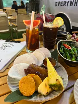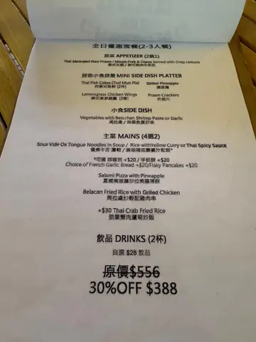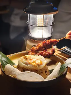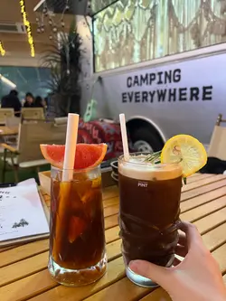 這間位於觀塘的露營主題餐廳,精心設計了露營氛圍,讓人在悠閒的氛圍中品嚐美食,正!五點去都險些沒有位,竟然咁滿😅這裏提供的套餐非常實惠,二人套餐:泰式肉碎生菜包清爽的前菜,肉碎醬汁恰到好處,香草🌿好吸引,配上脆嫩生菜🥬!迷你小食拼盤炸蝦餅、蝦片、燒菠蘿 🍍和燒雞翼,適合與朋友分享!最鍾意食多汁嘅燒菠蘿😍😍馬拉盞芥蘭苗濃郁的馬拉盞醬點綴脆嫩的芥蘭苗,鹹香四溢,充分展現了東南亞風味的魅力。慢煮牛舌湯檬粉絕對是亮點之一,牛舌燉煮得極為軟嫩,配上湯頭醇厚的檬粉,口感滑順且富有深度,是一道值得細細品味的佳餚。馬拉盞炒飯配雞肉串香氣十足的主食,炒飯火候掌控得宜,帶著馬拉盞的獨特風味,雞肉串則多汁入味,兩者搭配完美。凍桂花花蜜帶來淡淡花香,甜度適中,口感清新,非常適合炎熱天氣享用。熱泰式奶茶口感醇厚,茶香與奶香融合得恰到好處,甜度溫和,喝起來十分順口。此外,晚間的現場音樂表演為這次用餐體驗增添了不少亮點。輕鬆的旋律與餐廳的氛圍相得益彰,讓人在美食與音樂的陪伴下度過一個愉快的夜晚。…查看更多