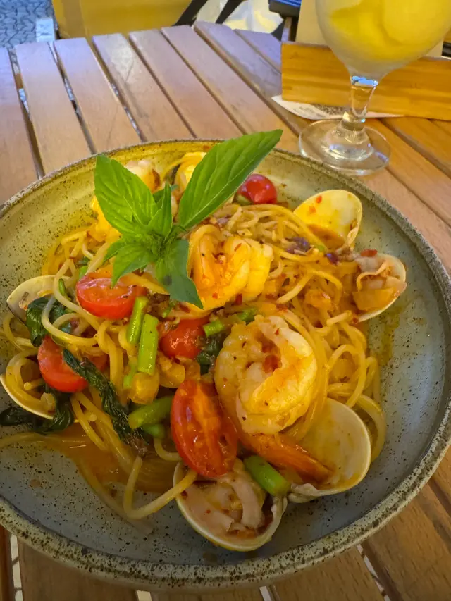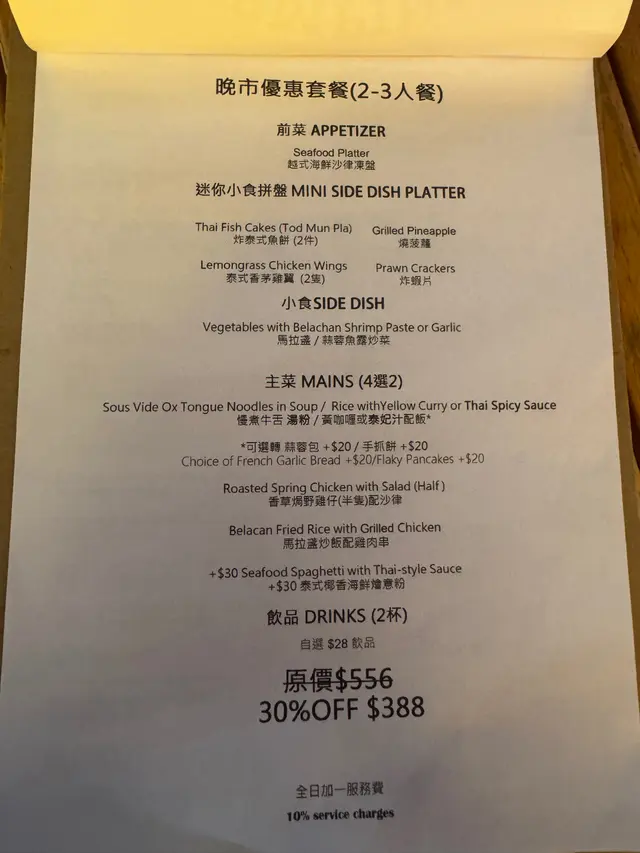 蒜片墨魚蟹肉意粉 & 生焗泰式叉燒 & 沙嗲牛肉串 & 沙嗲豬肉串 & 提拉米蘇咖啡 & 玫瑰花花蜜