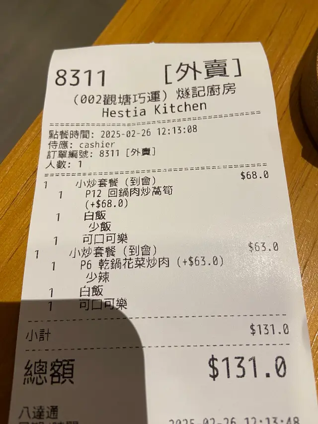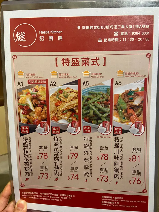 每次黎觀塘,都會忍唔住黎呢間食一黎扺食,二黎環境都好坐今日夜晚同個朋友2個人黎食,2人餐都係$115,熱飲+$2,凍飲 +$4,仲有2個飯,兩個餸,加一個娃娃菜。酸豆角肉碎呢個真係送飯一流,肉碎同酸豆角酸酸流流,配上白飯,忍唔住食完一碗又一砣!辣子雞經典川菜,青椒仔加辣椒仔炒雞肉,入口好麻。雞肉煎到好香口,好惹味。娃娃菜食咗咁多辣嘢,食個青青地嘅中和番食咗咁多嘢,埋單都係每人$60左右,高質又好味!