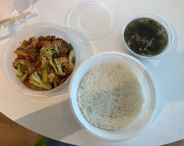 🍚🥢🥄觀塘香辣小菜午餐▫️午市套餐有免費湯/汽水🆗 乾鍋花菜炒肉 - $68包裝幾好,有2層,下層係白飯上層係餸。辣度不可選擇,但都還好,吾會話太辣或太淡,幾惹味。白飯份量夠,而且粒粒分明,幾好食。但餸嘅份量好似有d少,食左一半飯已經冇晒餸。椰菜花吾會好硬,但腩肉份量較少,炒到好碎,而且好乾硬晒。跟嘅湯係紫菜蛋花湯,冇咩味,清清地。$68係觀塘有好多選擇,間吾中想食辣野可以考慮下呢間,但性價比不算高。查看更多