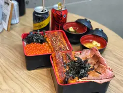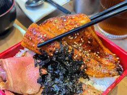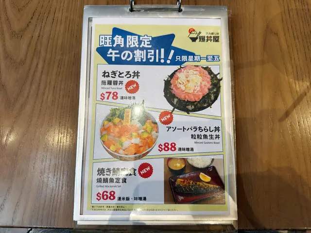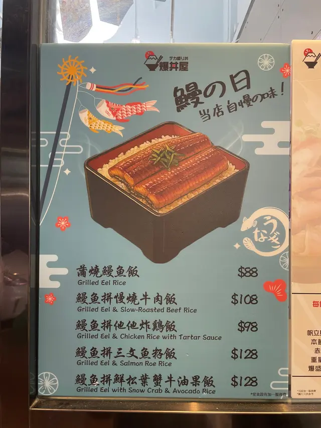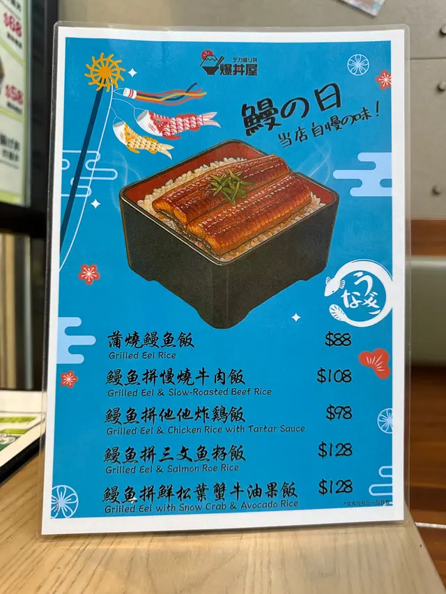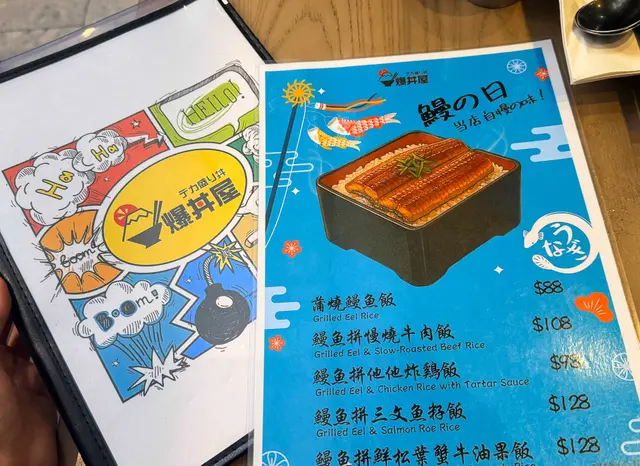 旺角有間以看起來很有份量的海鮮丼作為主打的爆丼屋。最近這餐廳更有愛神餐廳 Restaurant Cupid - 25周年聯乘活動。不論是店外還是店內的牆上、吊旗等都明顯有聯乘主題的裝飾,營造濃厚的二次元感。對於喜歡這遊戲的玩家來說,可不要錯過這次的打卡呢。而剛好這裡同是舉行「鰻魚祭」,我就是衝著這個來的!想單純吃鰻魚到組合形式的鰻魚飯都有,價位大約 HKD 88 - 128。鰻魚拼慢燒牛肉飯 (HKD 108)鰻魚和牛肉各佔一半,份量感十足。另外再配上海苔碎與芝麻,讓整體更添層次。薄切的慢燒牛肉很柔軟,吃落不止有微焦香,還有淡淡的肉香。刷上蒲燒醬的鰻魚入口甜鹹交織,咬下去油脂豐潤,雖會有小小魚刺但不影響口感。鰻魚拼鮮松葉蟹牛油果飯 (HKD 128)色彩上這款對比鮮明,在味覺上也有雙重口感,加上海苔碎別有一番風味。鮮甜的松葉蟹肉質細緻﹐配搭綿滑口感的牛油果來吃,剛好取得平衡。丼飯會附上一碗有豆腐皮、海帶和蔥花的麵豉湯,另外亦可以加錢點飲品。我就點了 無糖可樂 (+HKD 9)、冷萃麥茶 (+HKD 9) 。…查看更多