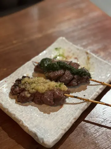 今晚黎試間日式串燒居酒屋,氣氛唔錯,燈光暖暖地,幾有日本街頭居酒屋嘅感覺。晚市有啲串燒係$44 2串,宵夜仲平啲仲多選擇添😍🍴蟹子沙律一黎緊係整返個前菜沙律先啦,又爽脆又解膩🍢雞皮 雞皮燒得夠乾身,表面香脆,唔會太油膩。咬落去有少少焦香,係必試嘅串燒🍢雞軟骨 雞軟骨爽口彈牙,外層有少少焦香,咬落去聽到「咯吱咯吱」聲,幾有口感。鹽味控制得啱啱好,唔會搶味。🍢雞皮蝦卷 幾有創意,雞皮包住蝦肉,外層脆口,入面蝦肉彈牙。兩種唔同口感夾埋一齊幾有驚喜。🍢一夜干阿波美雞翼 呢串雞翼用咗阿波美雞,肉質嫩滑,雞皮燒得微微焦香。最欣賞係入面有肉汁,唔會燒到乾晒。🍢大蔥雞肉 雞肉同大蔥夾得好平均,雞肉燒到啱啱熟,唔會柴,大蔥又甜又多汁,配埋燒汁,咬落去仲有少少爆汁感覺,好夾。🍢蝦夷蔥牛肉卷 呢串牛肉卷包住蝦夷蔥,口感幾特別。牛肉薄薄一層,帶少少焦香,而蝦夷蔥少少辣味,幾醒胃。🍢橫膈膜 肉味比較濃,燒到微焦但唔會韌,咬落去仲保持到少少肉汁。揀左蒜嘅調味,有少少重口味但又唔會搶咗本身肉味🍢牛舌 厚厚嘅牛舌,又係燒得啱啱好,唔會過熟。口感爽脆,配埋少少檸檬汁提味,更加開胃。🍢雞肉棒 雞肉棒配左燒汁同蛋黃,甜甜地,撈埋黎食好夾,味道豐富濃郁。雞肉棒加左雞軟骨粒粒,口感好正🍢白鱔 白鱔處理得幾好,無腥味,肉質滑溜。表面燒到少少焦脆,幾有層次。🍢和牛蛋燒飯團 最後呢個飯團係驚喜之一,外層脆卜卜,入面飯粒黏度啱啱好,加埋和牛肉同蛋香,食完好滿足。…查看更多