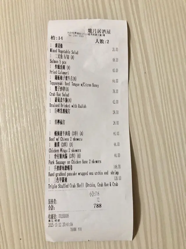 # 【食評】尖沙咀樓上居酒屋《爖月居酒屋》—— 串燒天花板級享受🔥🍢 今晚同老婆行到尖沙咀厚福街,原本諗住隨便搵間地方坐吓,點知上咗呢間樓上居酒屋**《爖月居酒屋》**,一坐低就覺得「嘩,呢度正嘢嚟喎!」完全出乎意料之外咁高質,價錢又唔離地,真係驚喜滿滿。---## 🏮 **環境氣氛**呢度係樓上舖,裝修日式感十足,木枱木櫈、柔光燈、背景播住J-pop、Lo-fi同小清新音樂,氣氛放鬆得嚟又有啲浪漫感~坐低飲杯啤酒,好似暫時離開咗香港,喺日本街角個小居酒屋咁。 服務方面,店員真心友善同細心,主動介紹優惠同推介菜式,完全冇逼客感。佢哋仲會提你:「九點後有串燒優惠、啤酒同魚生set都抵咗好多。」感覺上係真心想你食得開心。 ---## 🍢 **串燒:質素爆燈,每串都有驚喜**我哋點咗佢哋嘅**橫膈膜拼盤**、**牛舌**、**雞軟骨**、**茄子**、同埋**油甘魚鮫**。老實講,樣樣都唔伏!### 🥩 **橫膈膜拼盤(四款口味)**四串牛串分別配上唔同醬汁,包括Wasabi、蒜蓉、柚子醋同辣味噌。每一串都係唔同風味,但都保留到牛肉嘅香氣。- **Wasabi牛橫膈膜**:微嗆嘅芥末味唔會蓋過牛味,反而令肉味更加突出,好彈牙又爽口; - **蒜香牛橫膈膜**:肉汁豐富,燒得啱啱好; - **辣味噌**同**柚子醋**版本各有特色,一陣濃郁香、一陣清新酸香,好玩又好食!### 👅 **牛舌**厚切但唔韌,燒得啱啱好,外面香口、入面仲keep住嫩口感,入口多汁又有肉味,真係「舌尖幸福感」。### 🐔 **雞軟骨**上枱熱辣辣,外脆內嫩,啜落去“卜卜卜”聲超爽,加埋少少檸檬汁一齊食,完美平衡,有驚喜到我即刻話要encore一set😂 ### 🍆 **燒茄子**唔好睇少呢個素菜選手!茄子滋味香滑,配上木魚花同麻醬,啖啖香濃得嚟又唔膩,食得出係熱烘烘啱啱燒起,口感好rich!### 🐟 **油甘魚鮫**真係好高質!魚皮燒到脆卜卜,內裡魚肉滑嫩,脂香滲入口腔;配埋蘿蔔蓉同檸檬汁,味道平衡得完美,好正。---## 🍤 **主食:天婦羅烏冬**估唔到連副食都咁掂——天婦羅炸得酥脆乾爽、一啲唔油,蝦隻隻大隻實肉。烏冬湯底係雞湯底,溫潤香濃,有啲似日式嫩雞煨麵嘅感覺,唔單止暖胃,仲好令人滿足。 ---## 🍺 **啤酒優惠感覺抵到爆**最驚喜係啤酒優惠:**$108 有 6 罐 Asahi 啤酒!** 以尖沙咀地段嚟講真係誇張抵,冰凍啤酒配串燒一流,啤得爽嗌住「人生一大樂事」都唔誇張!🤣 ---## 🎯 **特別加分:抽獎轉盤好玩又開心**呢度仲有**轉轉樂抽獎活動**!每枱食客都有機會玩一次,獎品有免費清酒、現金券、甜品等。我哋嗰晚仲真係見到隔離枱抽中清酒一杯,全場氣氛都High咗。呢種小巧思,真係令人印象深刻。 ---## 🌕 **總結:抵食、好氣氛、食物認真高質**整晚食完飲完,埋單共$810,加上環境、食物、水準、氣氛、服務,完全值回票價。 ⭐ **推介指數:9.5/10** - 串燒選擇多、調味靈活 - 食材新鮮,火候控制準 - 店員親切、有玩味感 - 啤酒優惠太吸引 - 音樂氣氛愜意 📍 **爖月居酒屋 Izakaya Rutsuki** 尖沙咀厚福街12–12A 號麗斯樓 2 樓 > 下次一定再嚟,呢度真係**尖沙咀串燒界天花板**, > 食住串燒、飲住啤酒、聽住音樂——人生有時,就係要咁簡單快樂。🍻🔥…查看更多