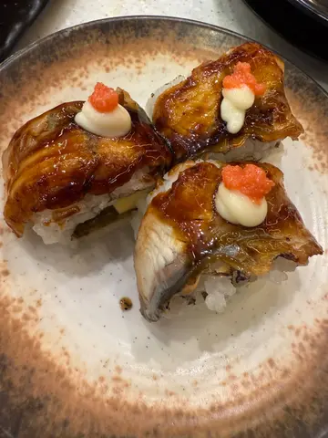 同朋友諗緊去邊度食嘢見到附近有間壽司舖 就入咗去試下仿鮑魚壽司 口感煙韌 都幾好食跟住試下 火燒三文魚 魚腩 壽司 熱辣辣 真係好好食再試下呢個 螺肉壽司 新鮮有味道再嚟可以試下D酸薑 都好鬼好食