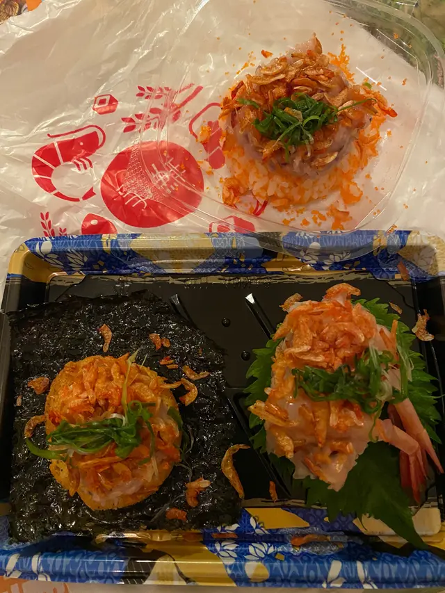 櫻花魚蓉丼$12,櫻花魚蓉脆脆$8,櫻花甜蝦塔$12